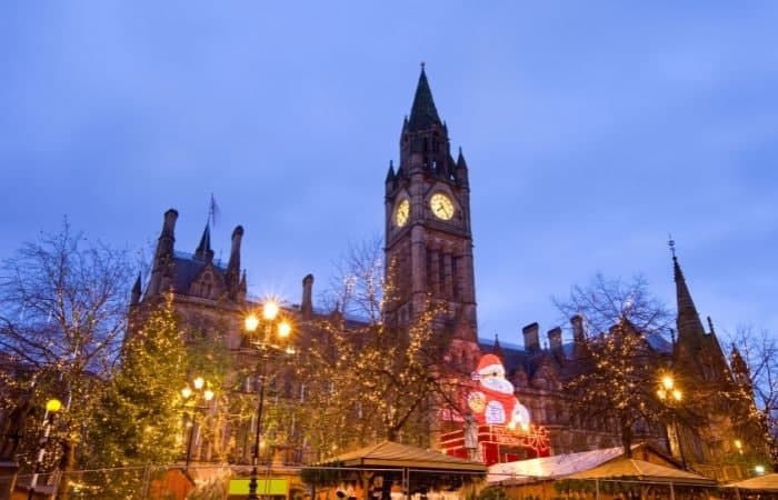 Adornado con luces brillantes y casetas de madera, Albert Square, frente al Ayuntamiento, alberga uno de los mercados navideños más grandes e impresionantes de Manchester. En sus puestos se pueden probar buenos platos y comprar adornos, juguetes, ropa y productos artesanales. Además, cuenta con un icónico bar, el Old Windmill House, cuya comida llama a multitud de visitantes cada año. Junto a este mercado, hay una decena más repartida por el resto de la ciudad que atrae a millones de turistas.