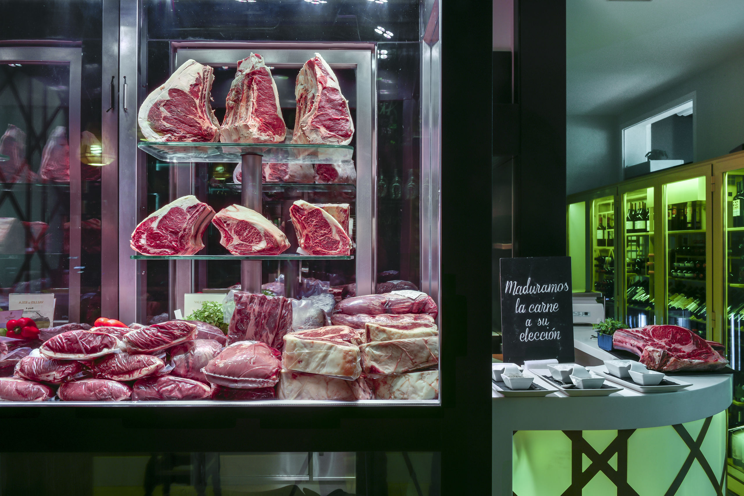 En A'Kangas by Urrechu destaca una vitrina en la que se exponen las piezas de carne.
