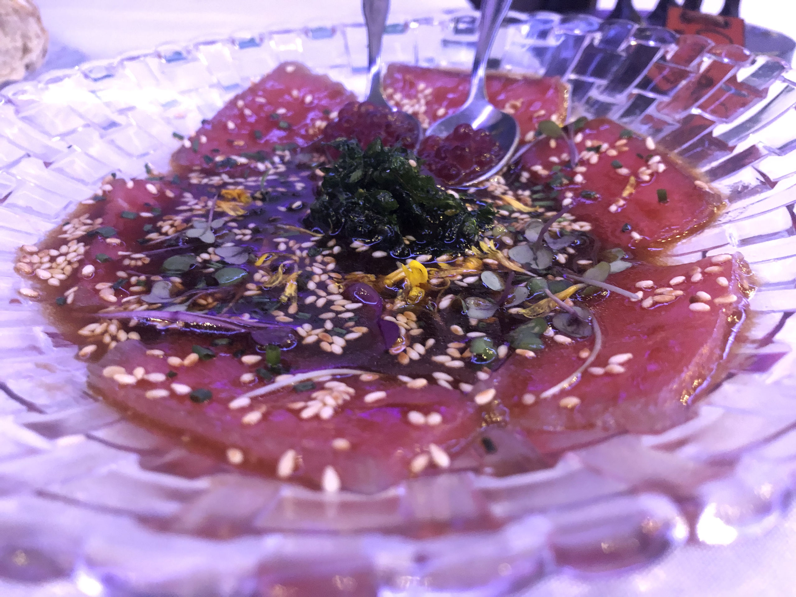 Sashimi de atún de almadraba al ajo tostado de A'Kangas by Urrechu.