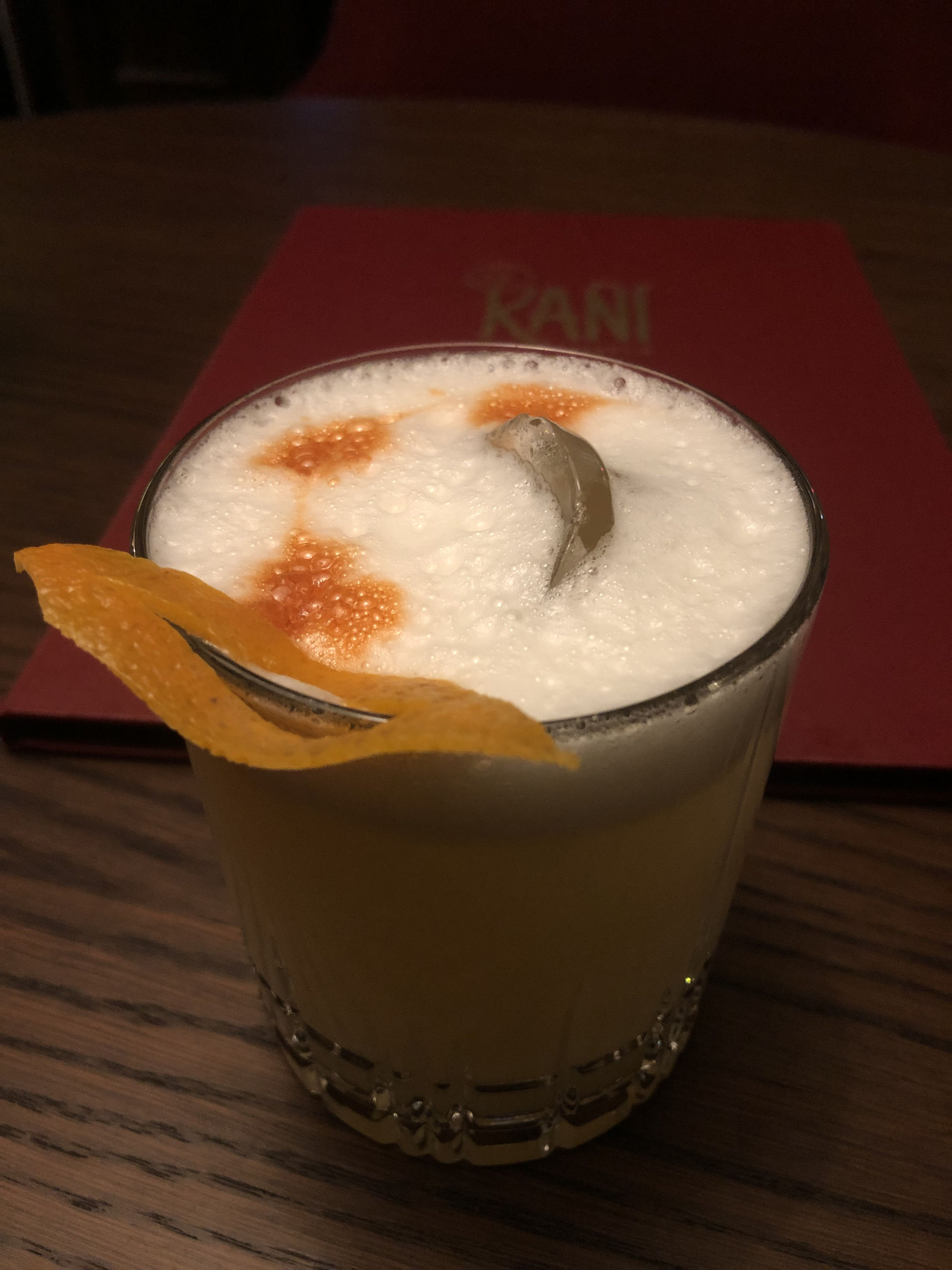 Cóctel de autor chic truffle de Le Kañí, una fusión de whisky Gwarlarn infusionado con trufa, limón, clara de huevo y angostura.