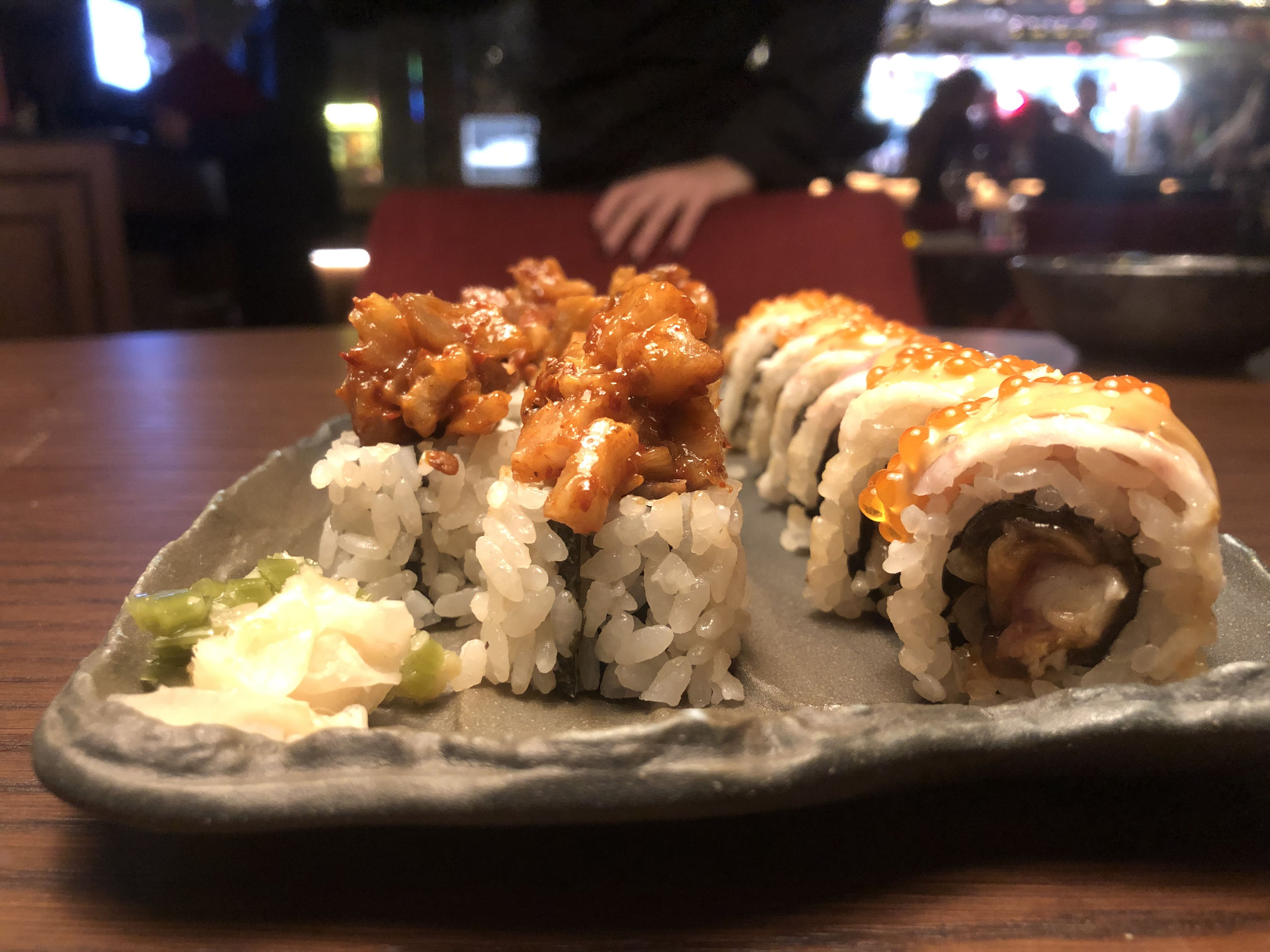 Yawata maki, con anguila ahumada asada, mayo de ajo negro y huevas de trucha; y un mejor spicy toro maki, con chu toro laqueado y aguacate braseado.