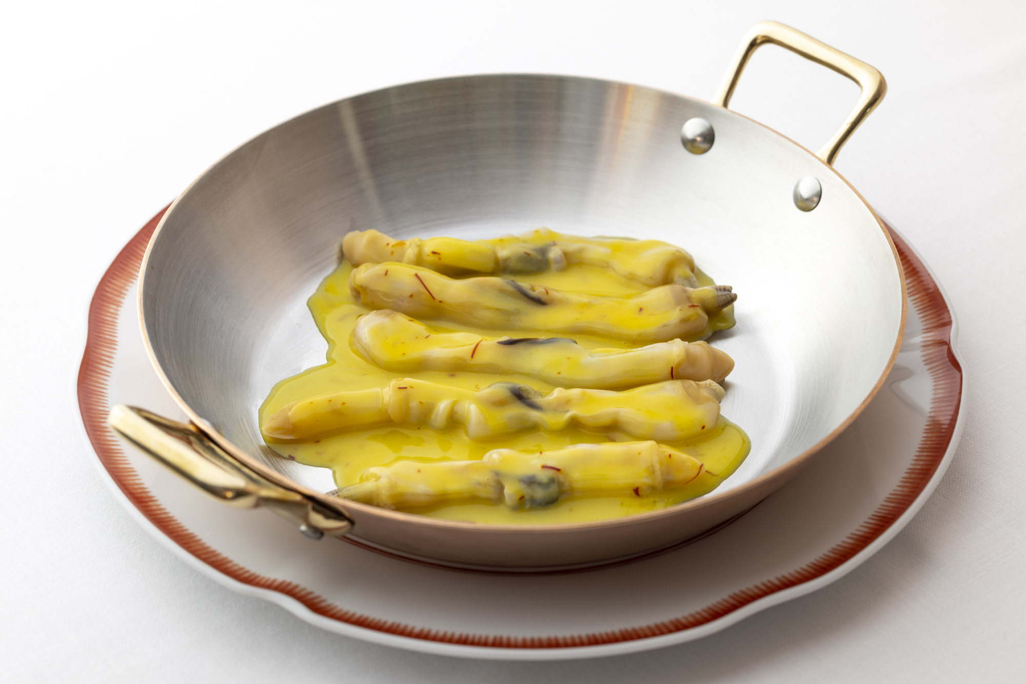 Navajas en salsa de vermut de Madrid y mantequilla azafranada.