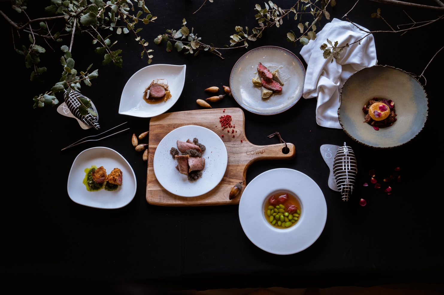 Bodegón con los platos cocinados por los chefs con los cortes más selectos de cerdo 100% ibérico Alta Expresión COVAP.