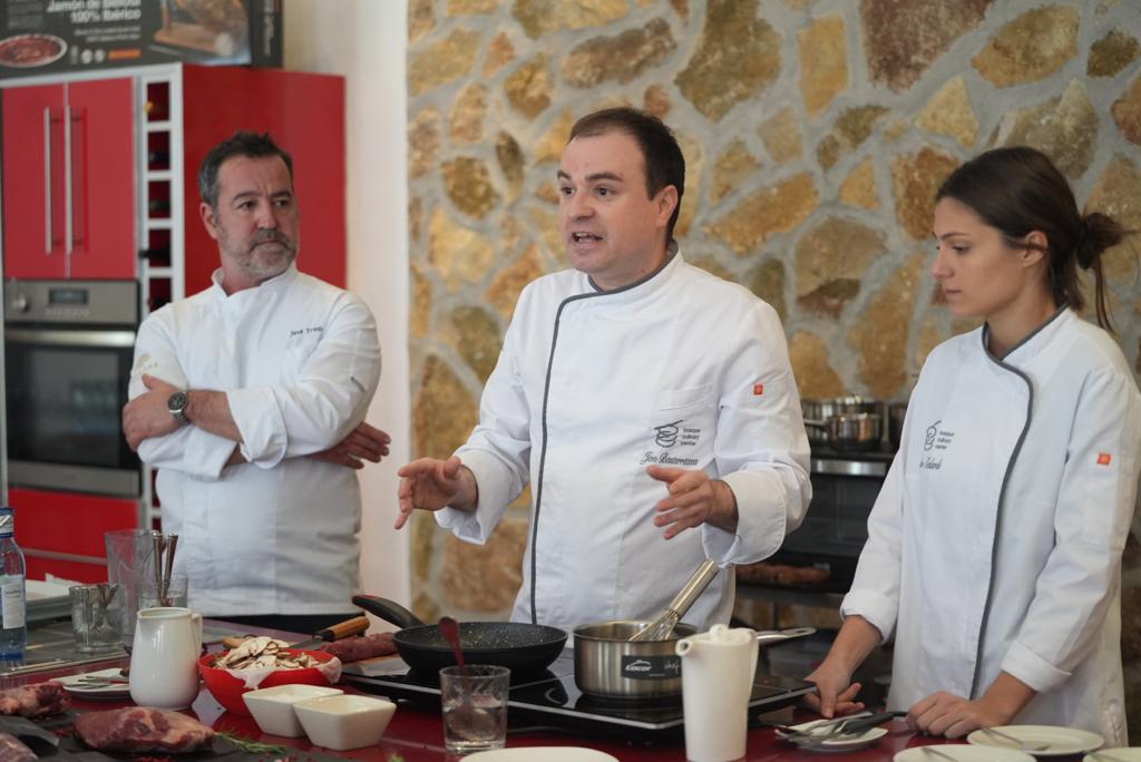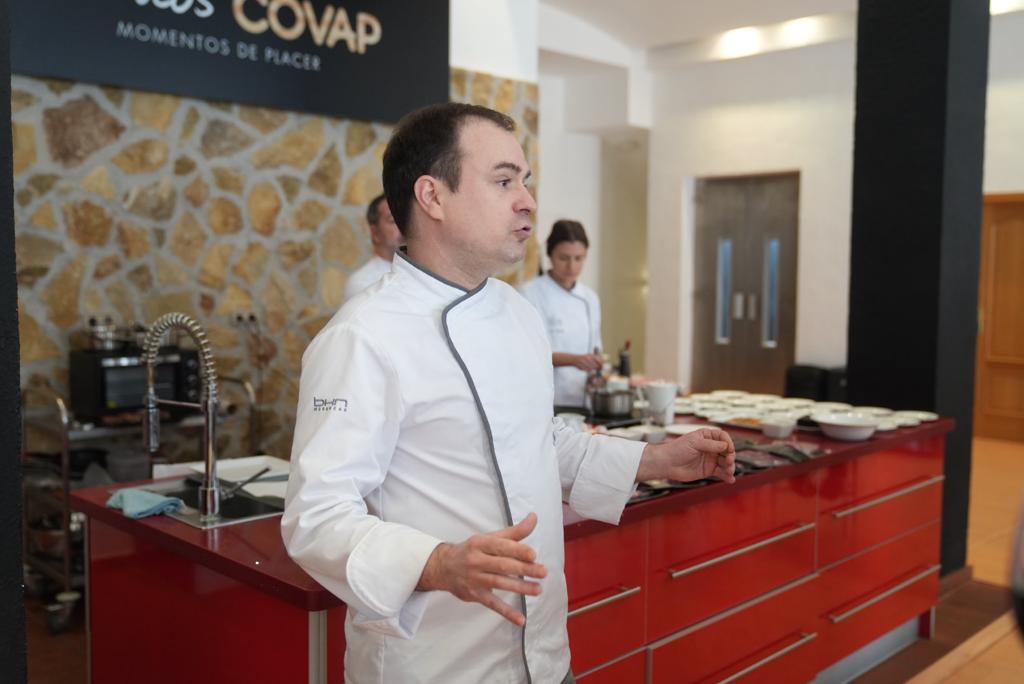 El chef del Basque Culinary Center, Jon Basterrechea, explica los platos durante el showcooking.