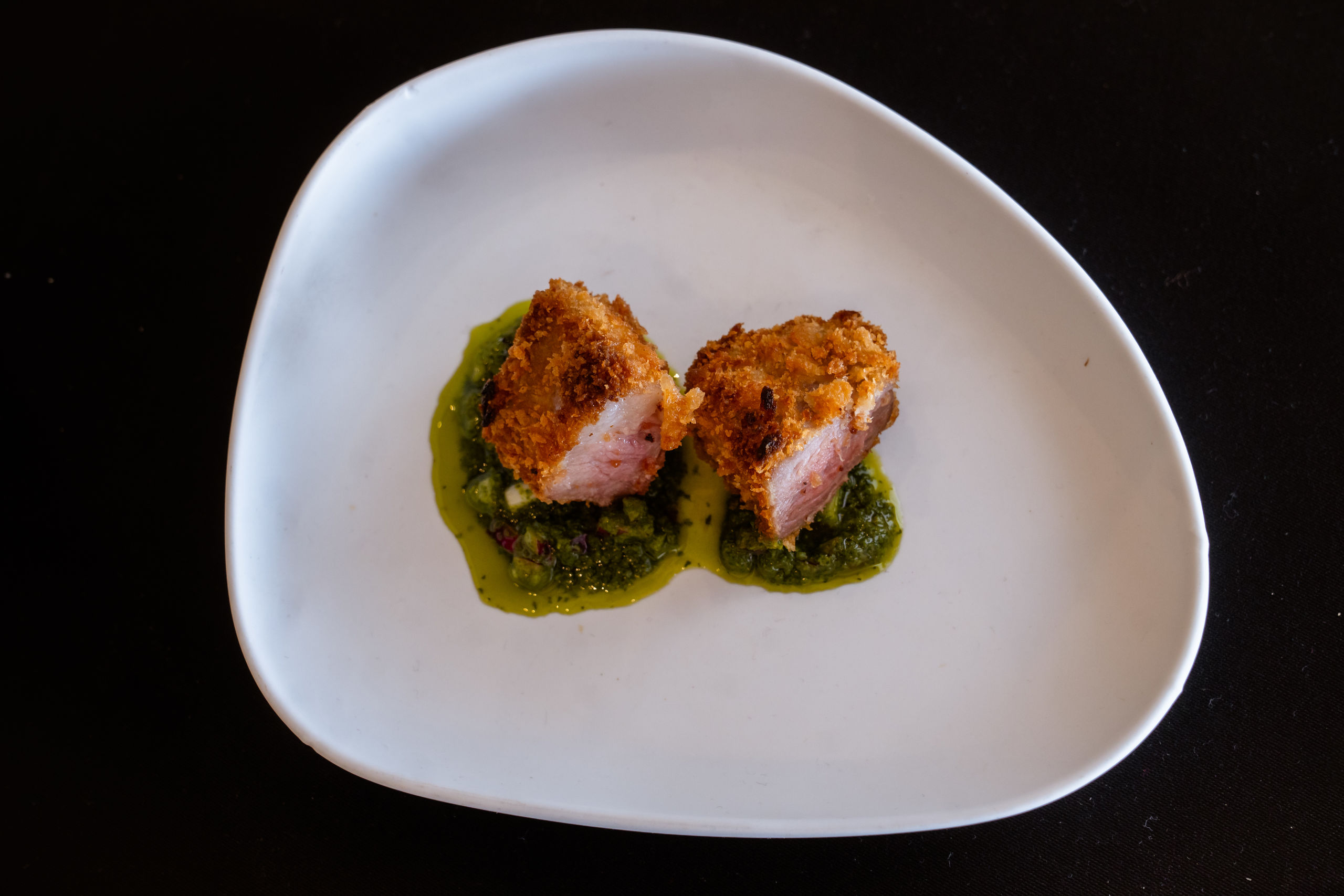 Secreto de bellota 100% ibérico crujiente con chimichurri.