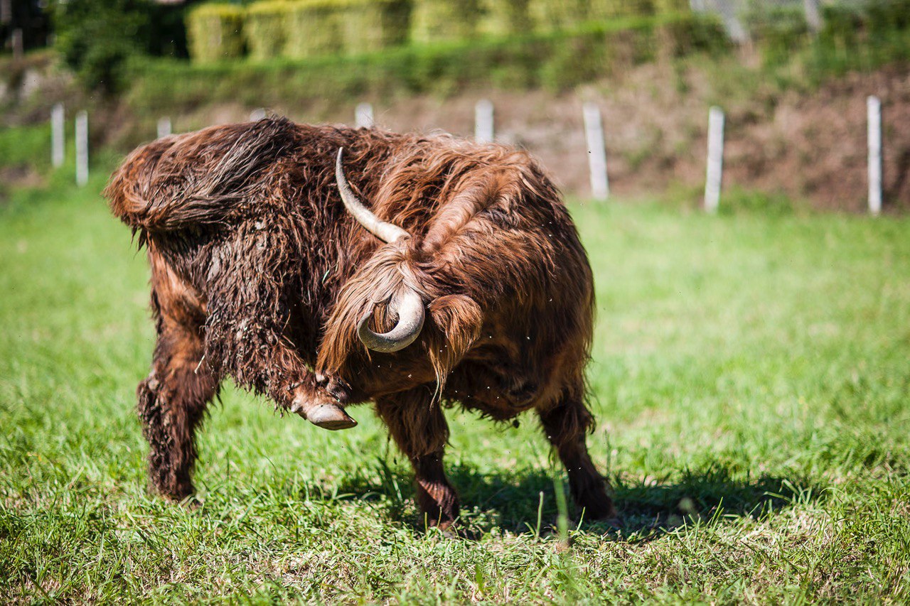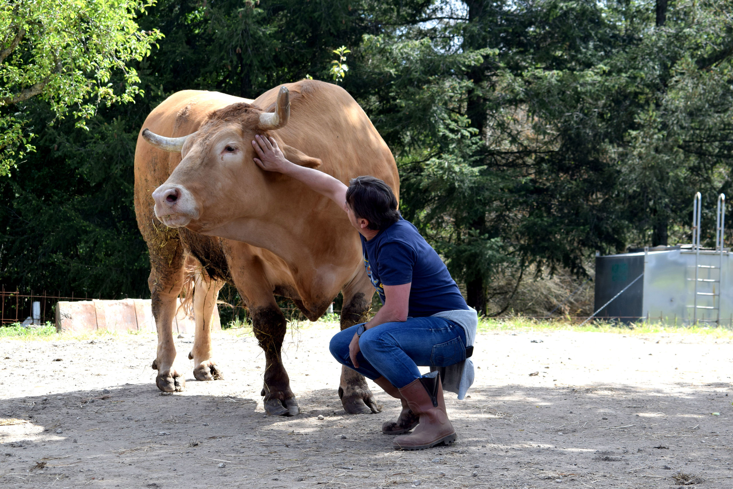 Uno de los bueyes que pasta en libertad en las fincas de Discarlux.