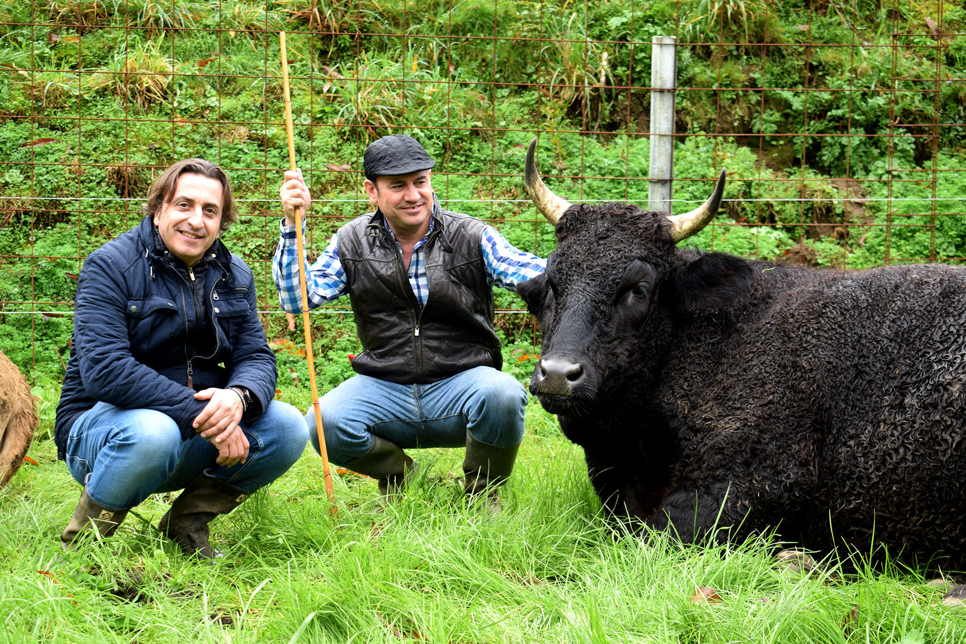 Xosé Portas y Carlos Ronda posan al lado de un Wagyu. El proyecto Ushido ya es casi una realidad.