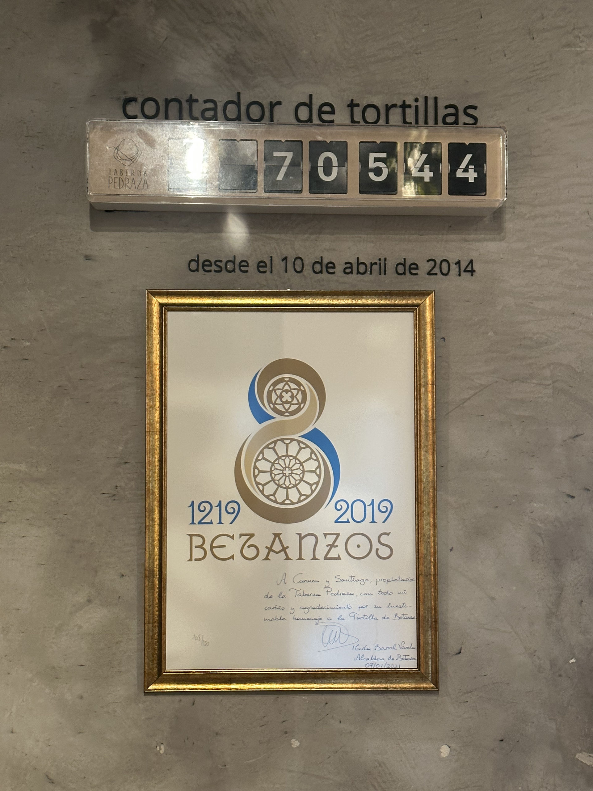 El contador de tortillas de patata estilo Betanzos que Carmen Carro lleva cocinadas en Taberna Pedraza.