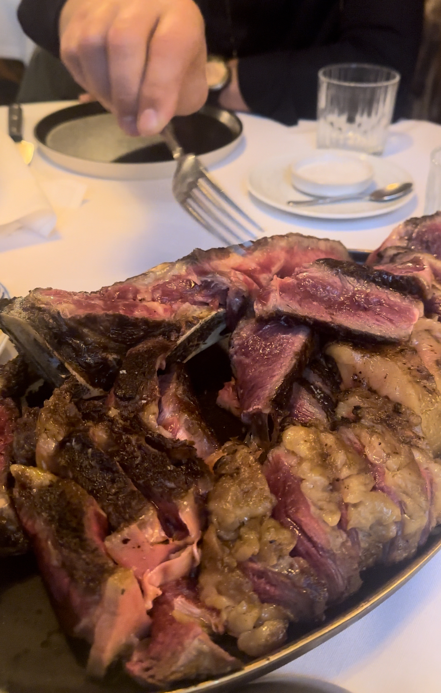 La grasa es una parte muy importante del chuletón, al igual que el punto de la carne, poco hecho.