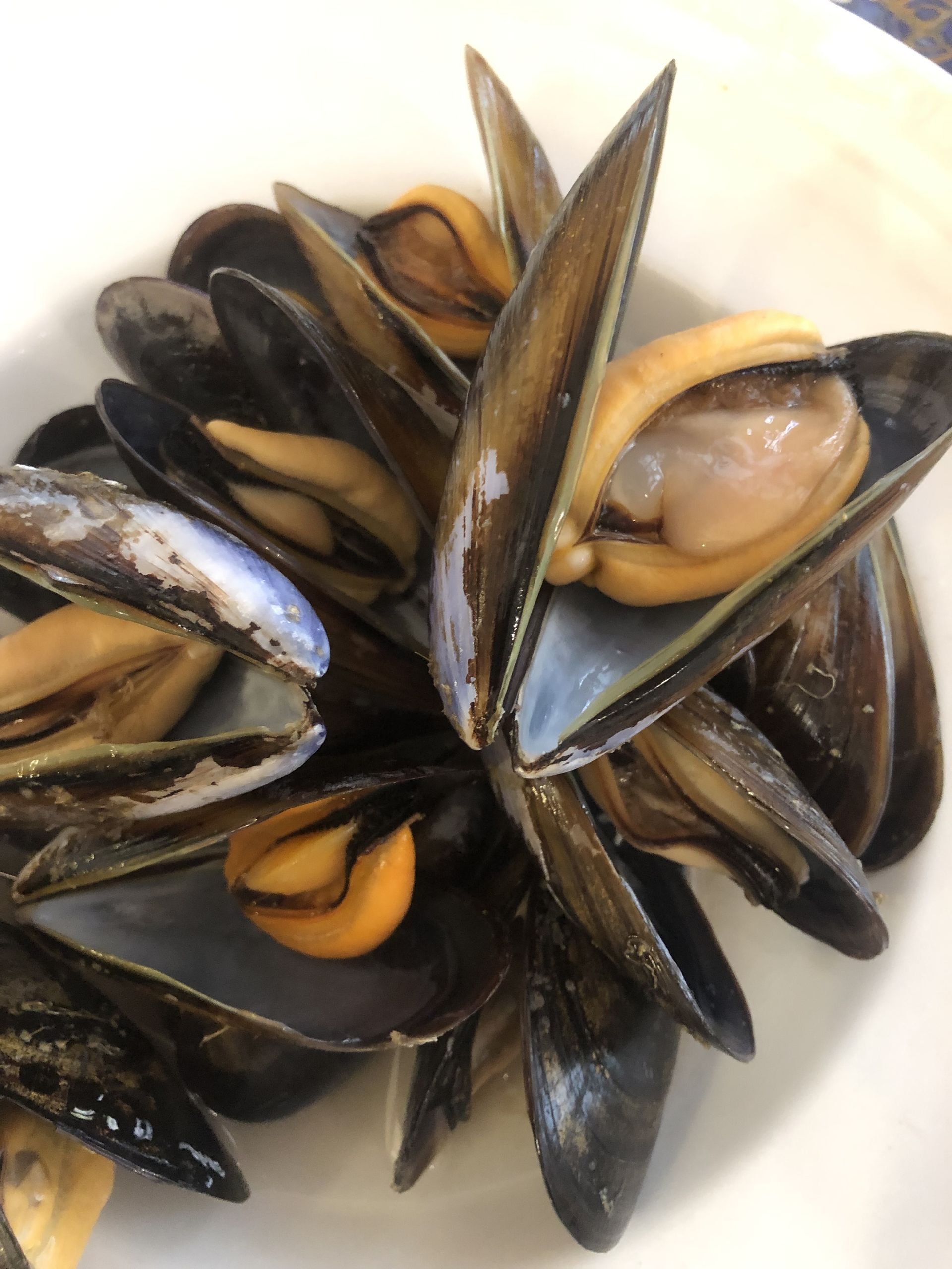 Y como decíamos el género en La Giralda se cuida al detalle y te puedes encontrar también con estos espectaculares mejillones al vapor en los que se puede apreciar el tamaño del bicho.