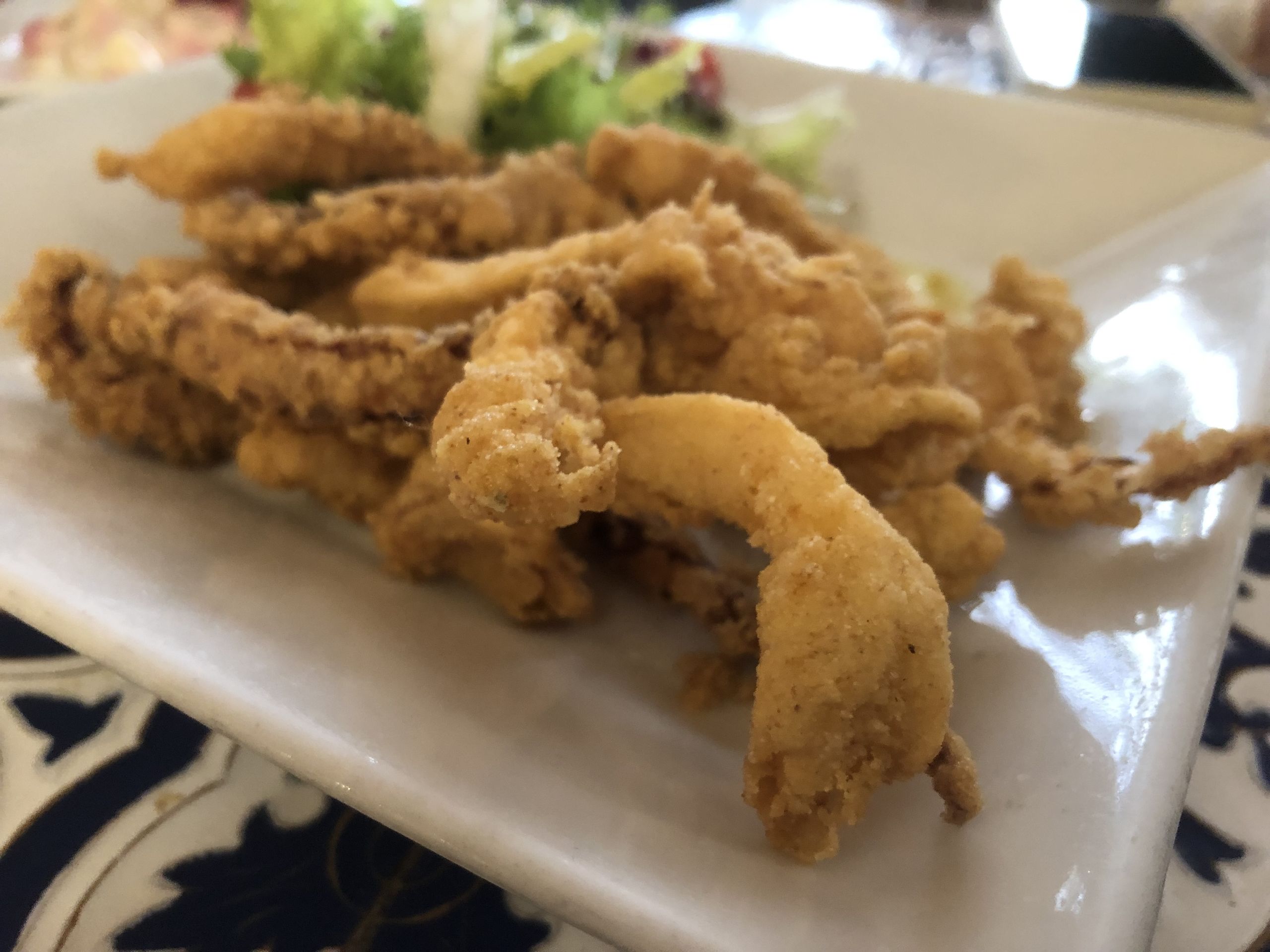 Y de la fritura también probamos estas buenas patitas de calamar a la andaluza, con un rebozado ligero para que no enmascare el sabor del cefalópodo.