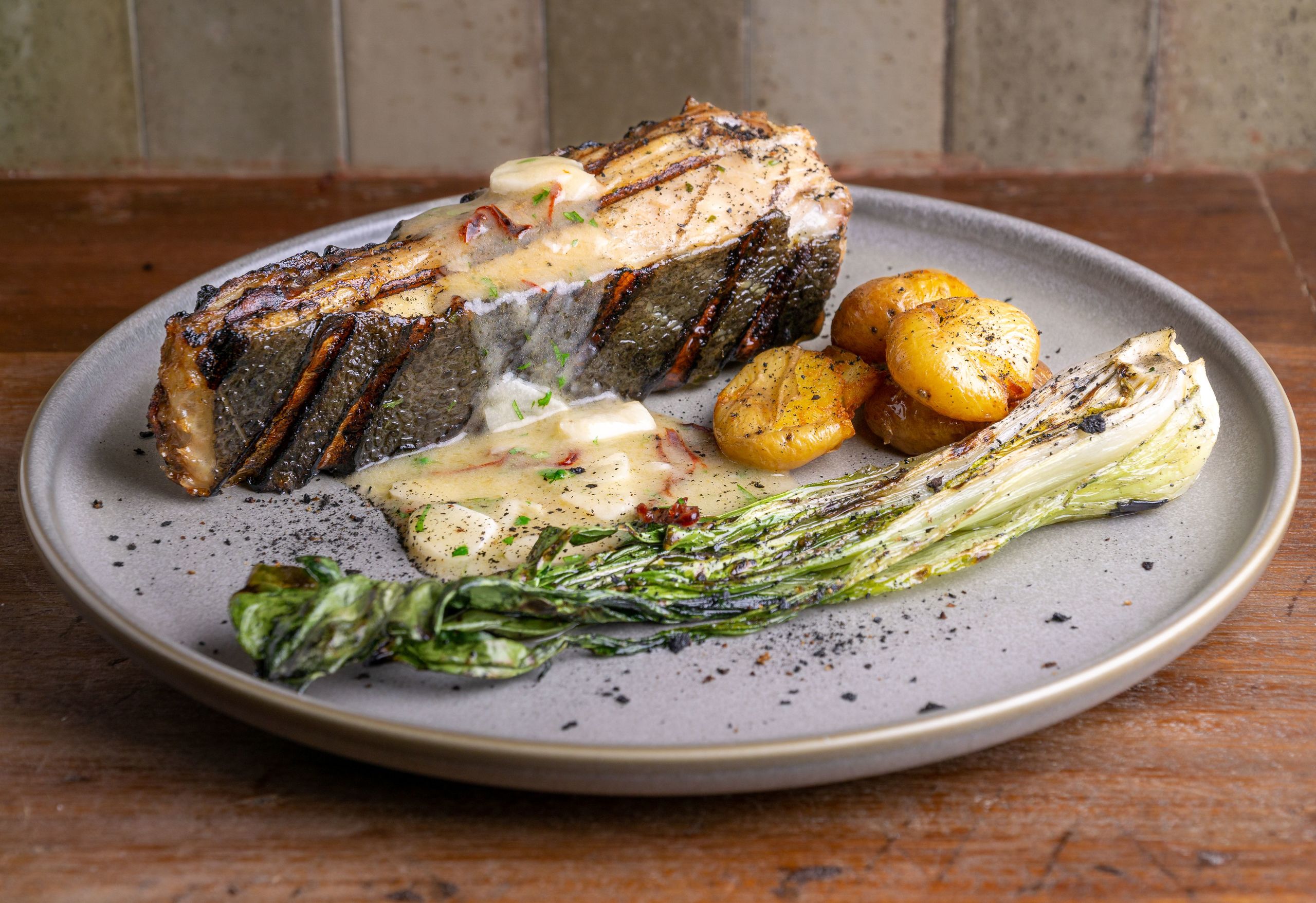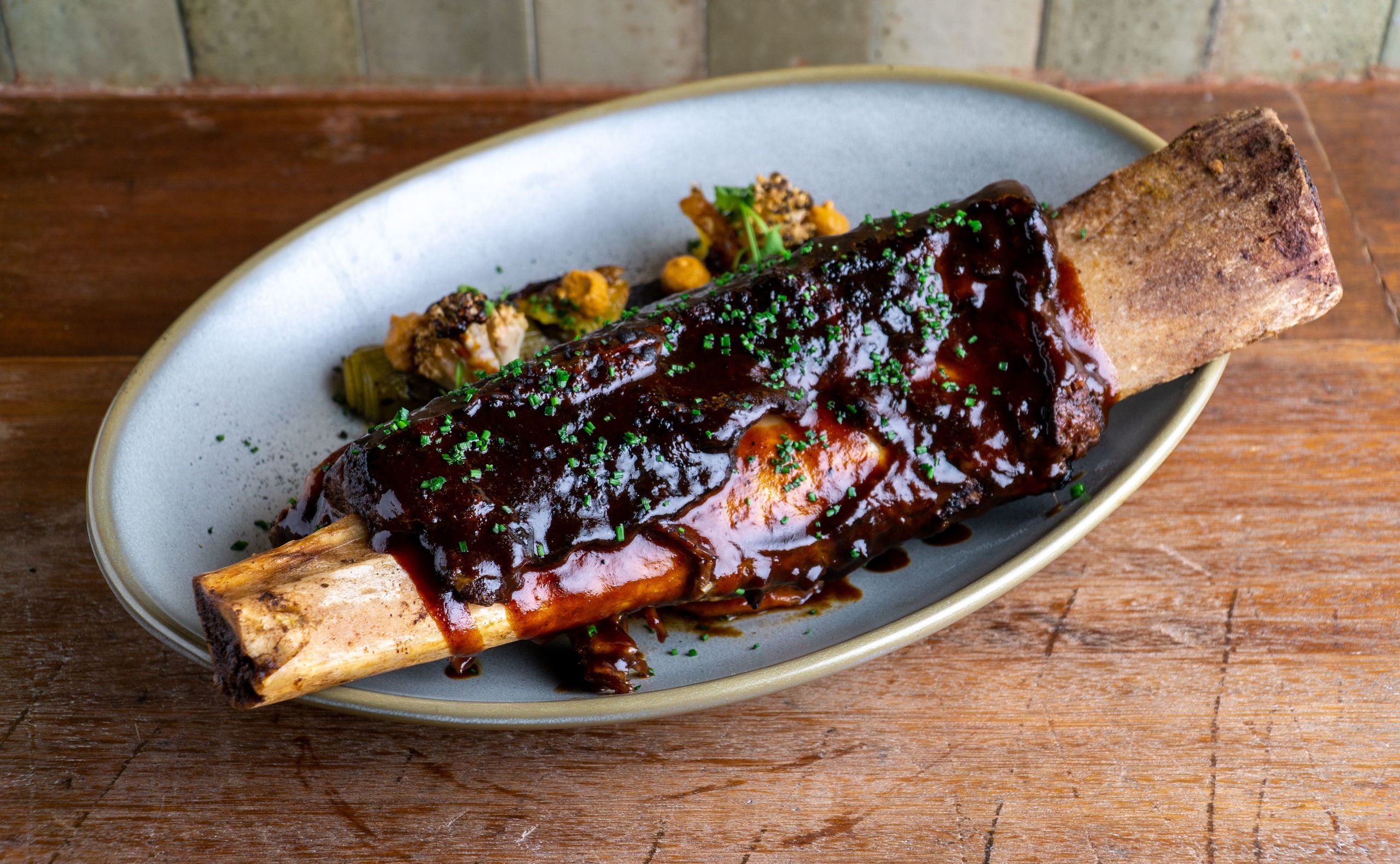 Costilla de Angus cocida a baja temperatura durante 12 horas en horno de leña.