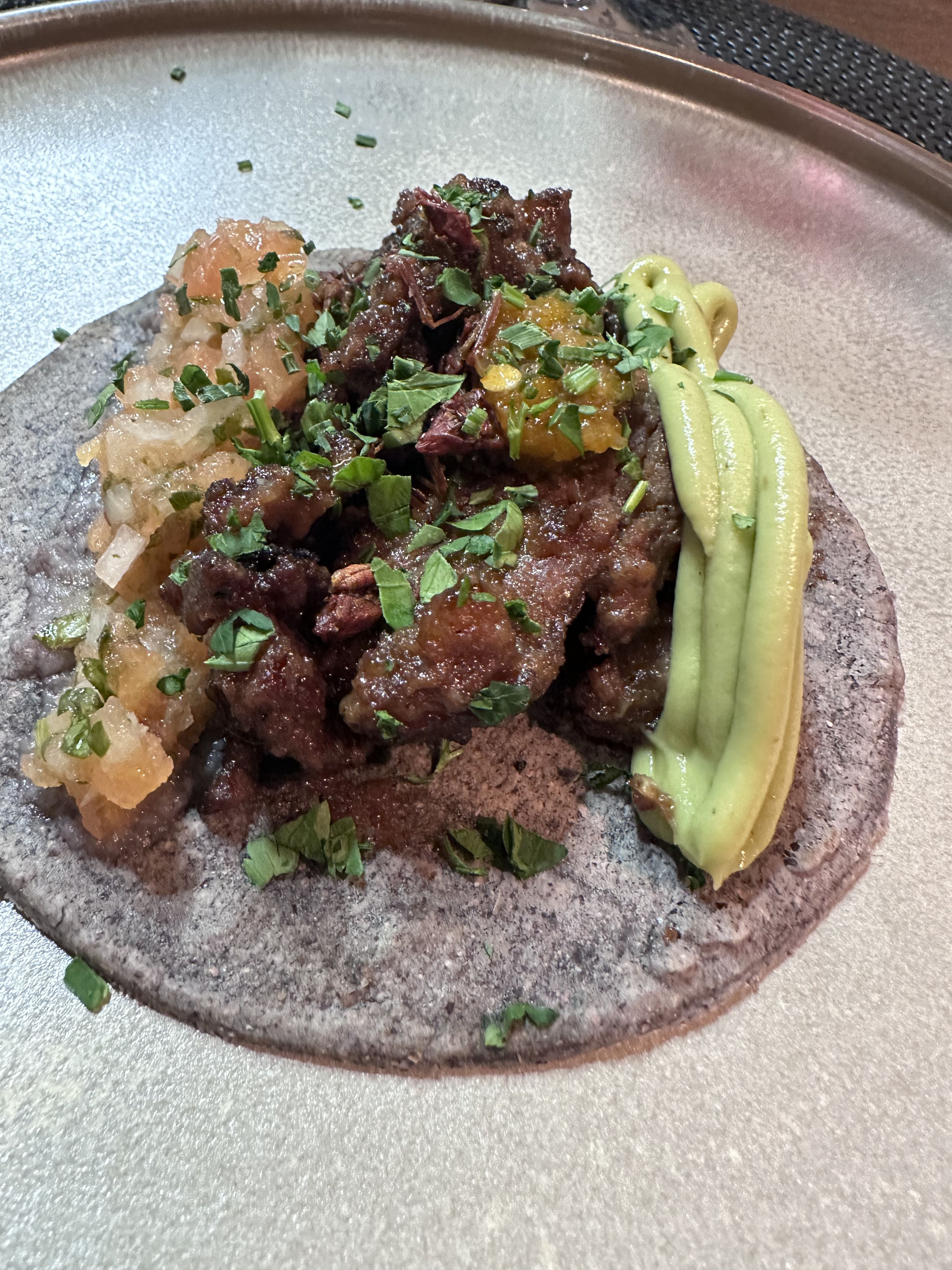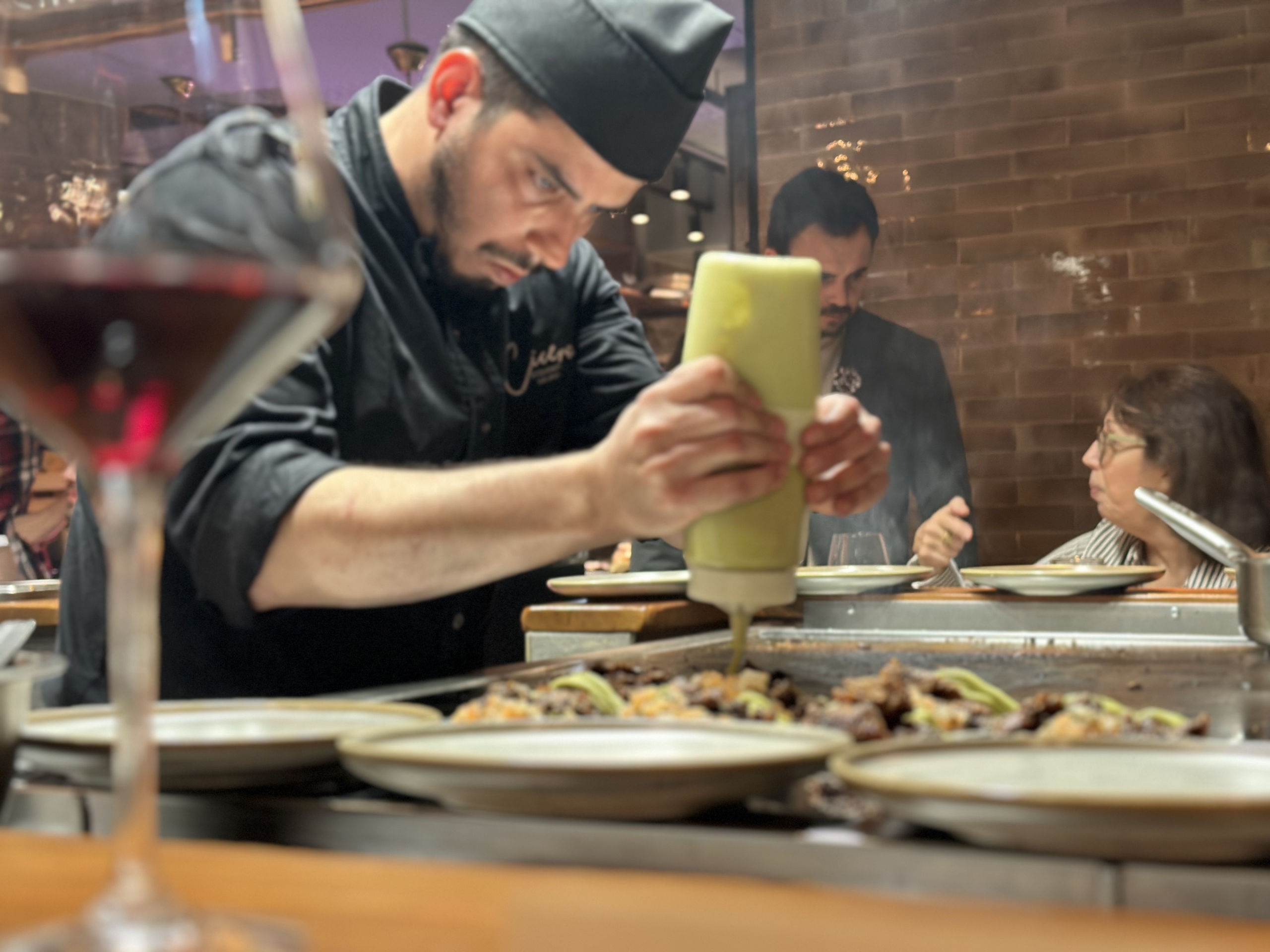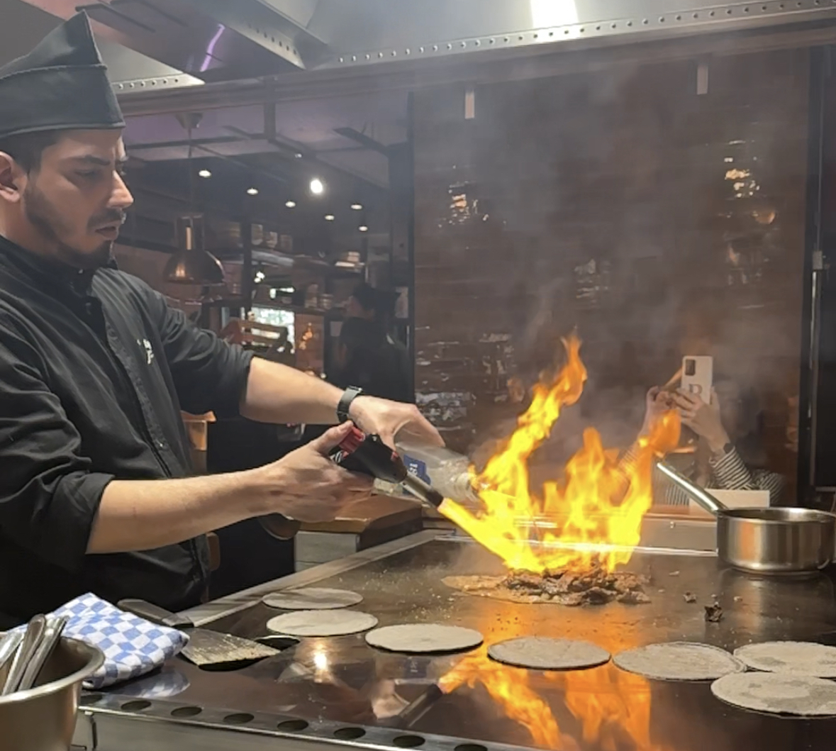 El chef de Cícero emplata en la plancha de la mesa comunal los tacos.