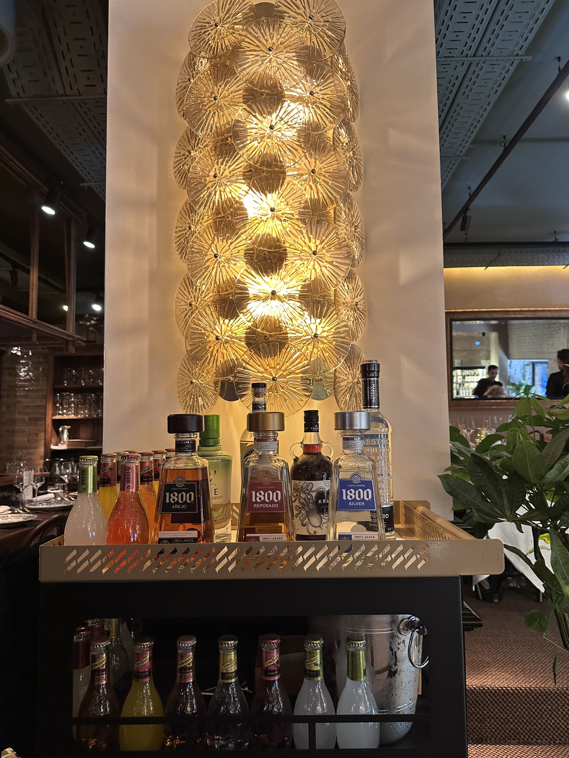 Sobresale, eso sí, la amplitud de su carta de destilados mexicanos. En el capítulo de tequilas, aparecen las principales ramas de las grandes casas mexicanas, como José Cuervo —imperdible su tequila reserva de la familia— y el 1800 Cristalino; los mezcales están representados por las etiquetas más emblemáticas, como 7 Misterios, 400 Conejos, Alipus y Montelobos.