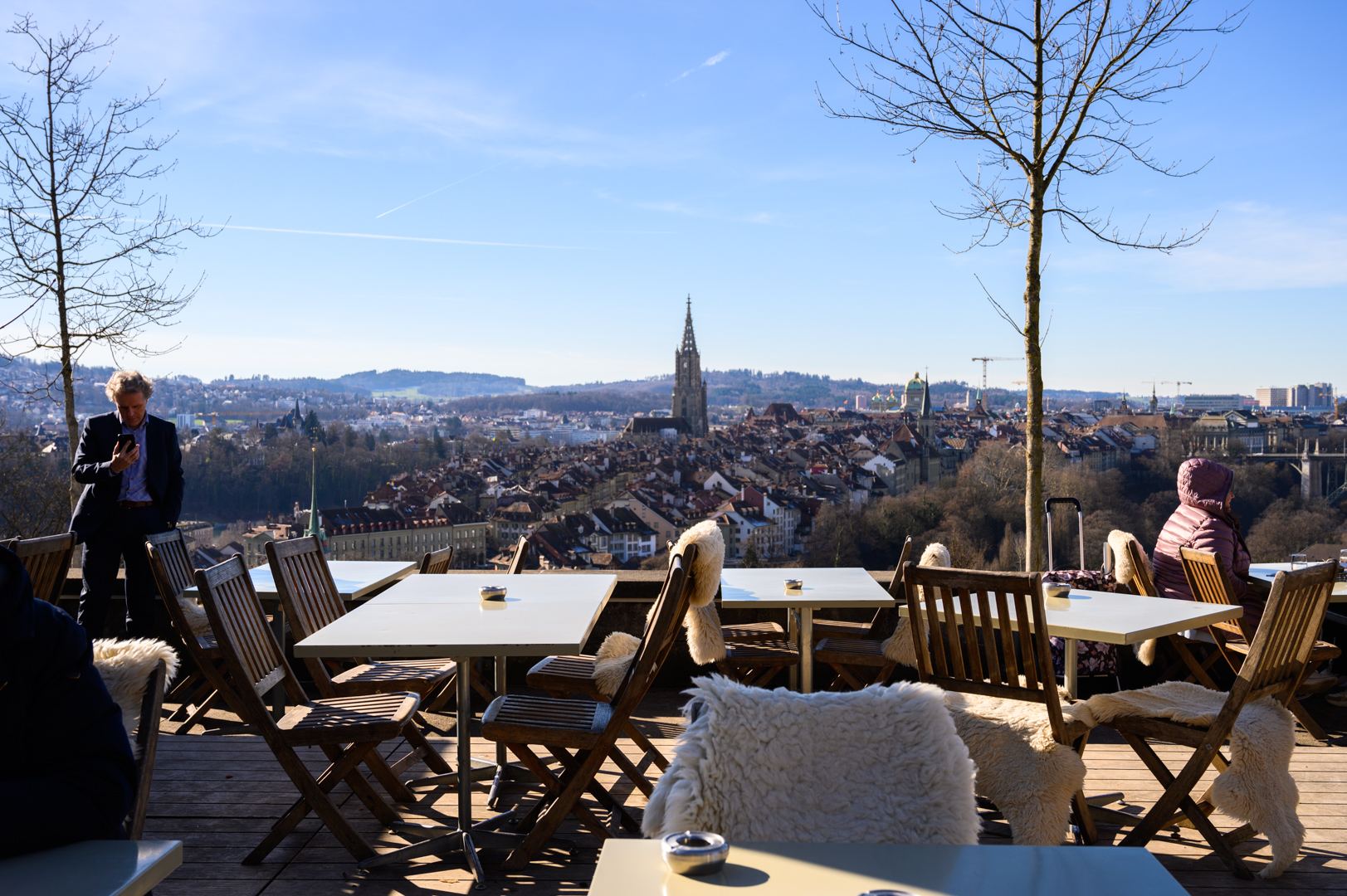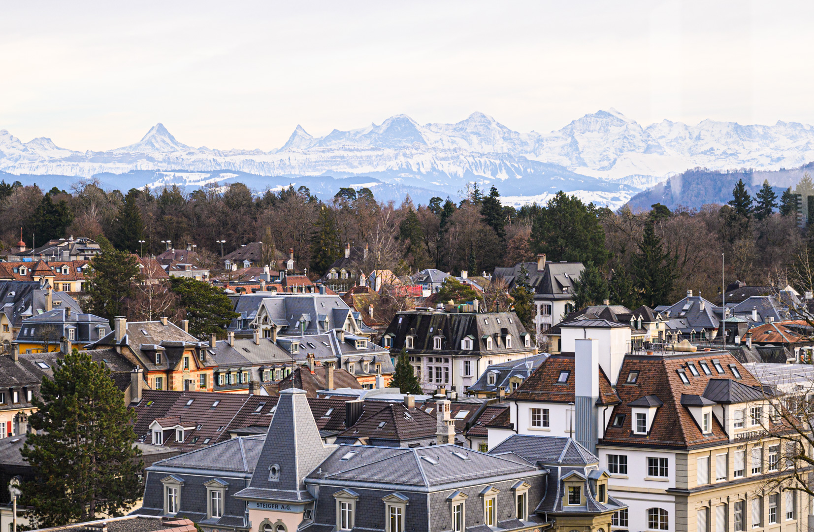 Los Alpes de fondo se pueden ver en días despejados desde las azoteas de los edificios de la ciudad.