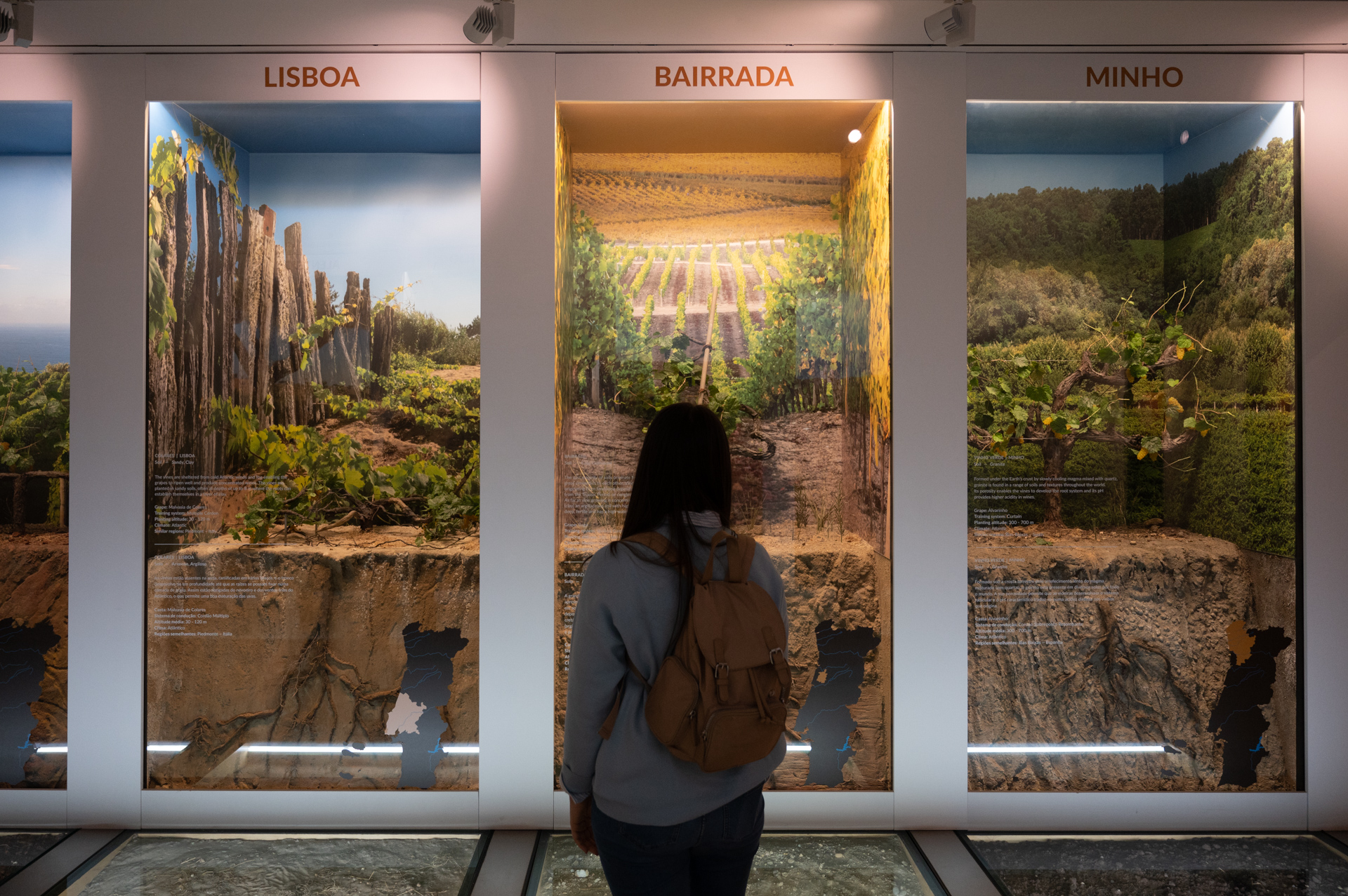 Diferentes tipos de tierra y de zonas vinícolas de todo Portugal. Una de las salas de The Wine Experience, el museo del vino de Portugal, en WOW, dedicada a la tierra de los viñedos.