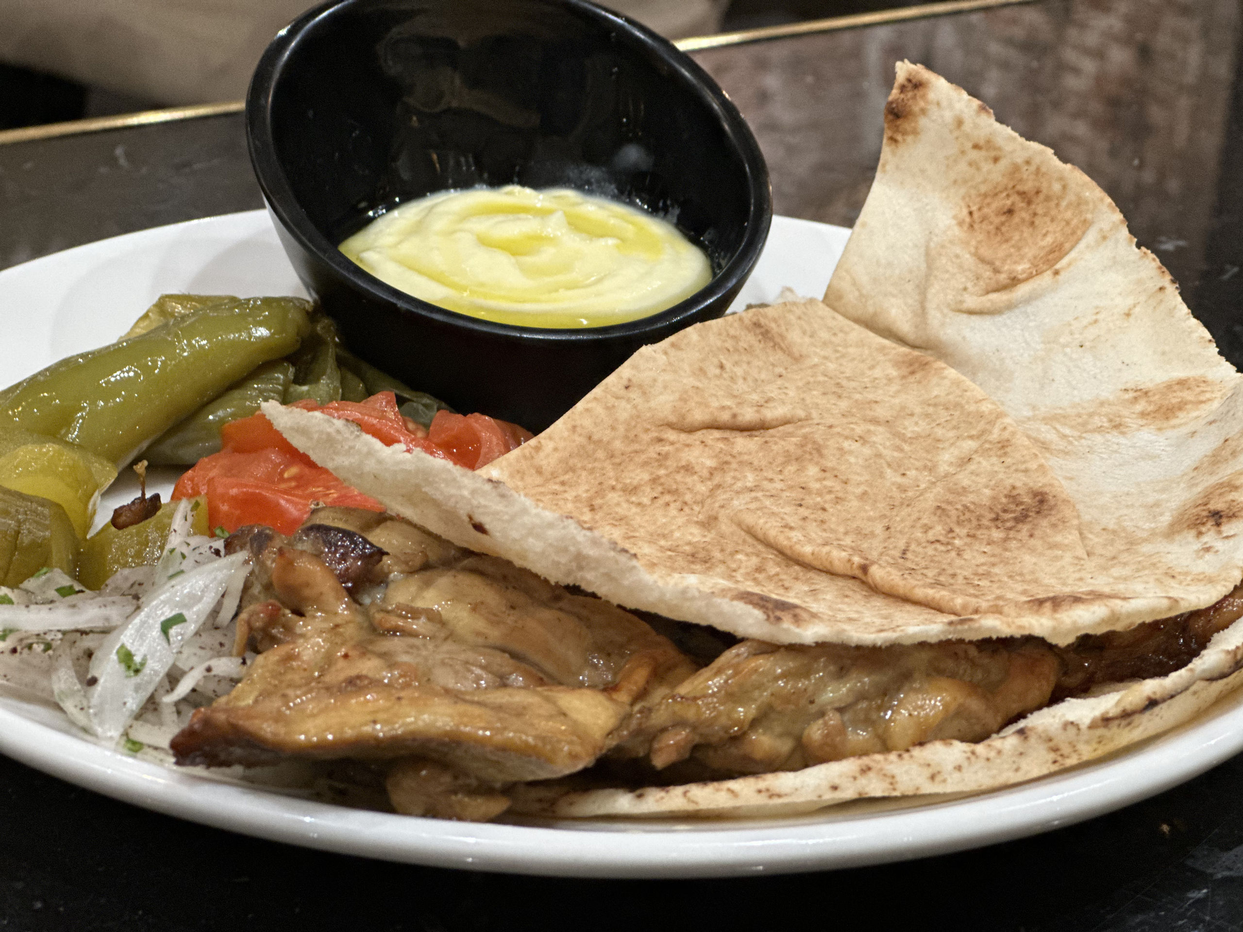 Uno de los platos principales de Solidere es este rico el faruj meshwi, pollo deshuesado marinado en la salsa del chef y asado al carbón.