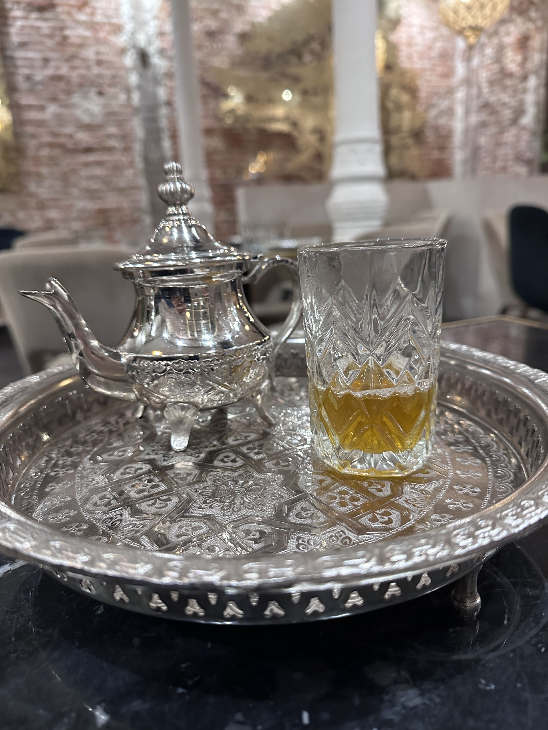 Como invitación de la casa te ofrecen un té moruno que acompaña a la perfección con los postres.