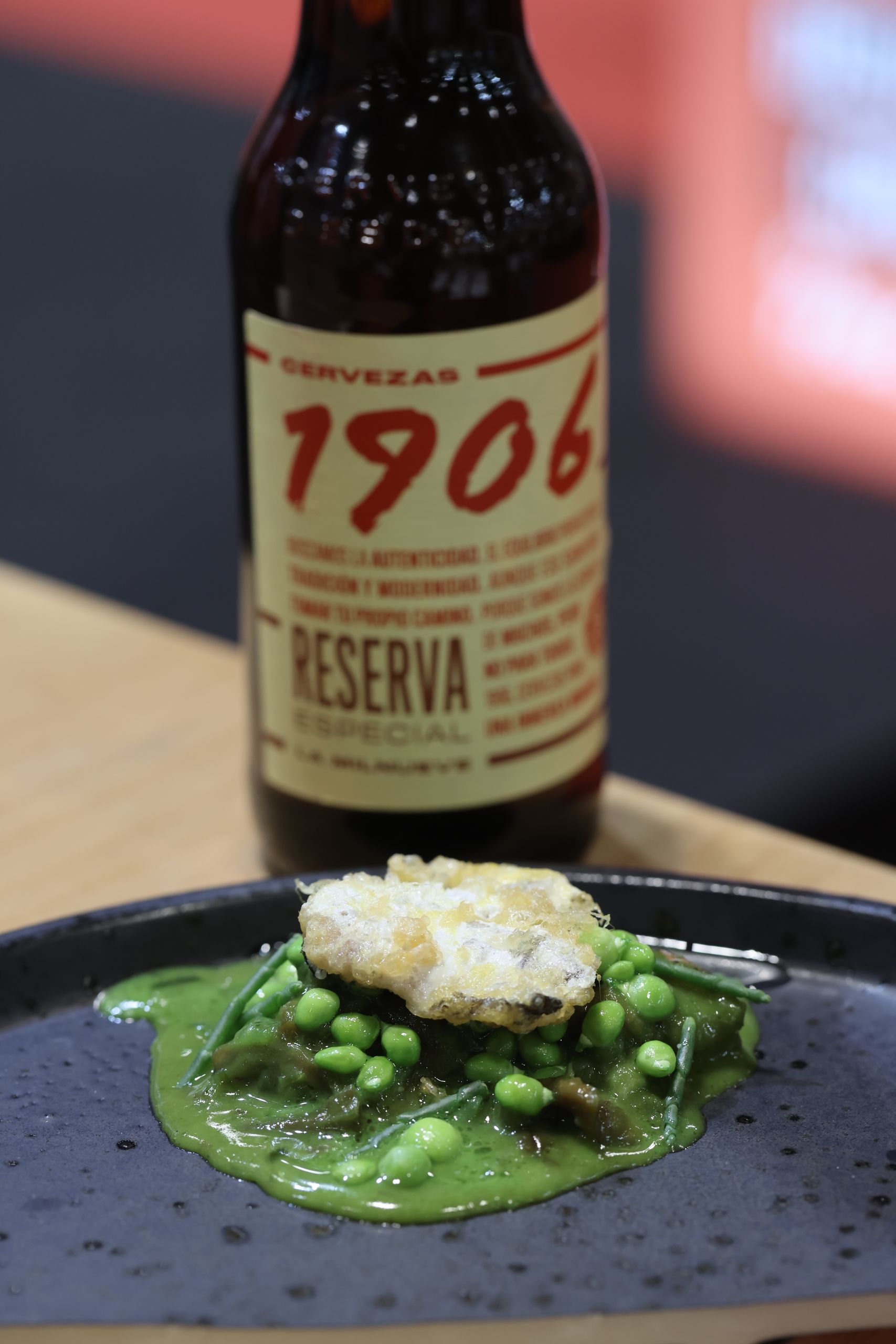 La propuesta ganadora del chef Julen Bergantiños se ha llamado "Manitas de porco celta en salsa verde con kokotxa de merluza cántabra y arbeyos", plato para el que ha elegido cerveza 1906 Reserva Especial.
