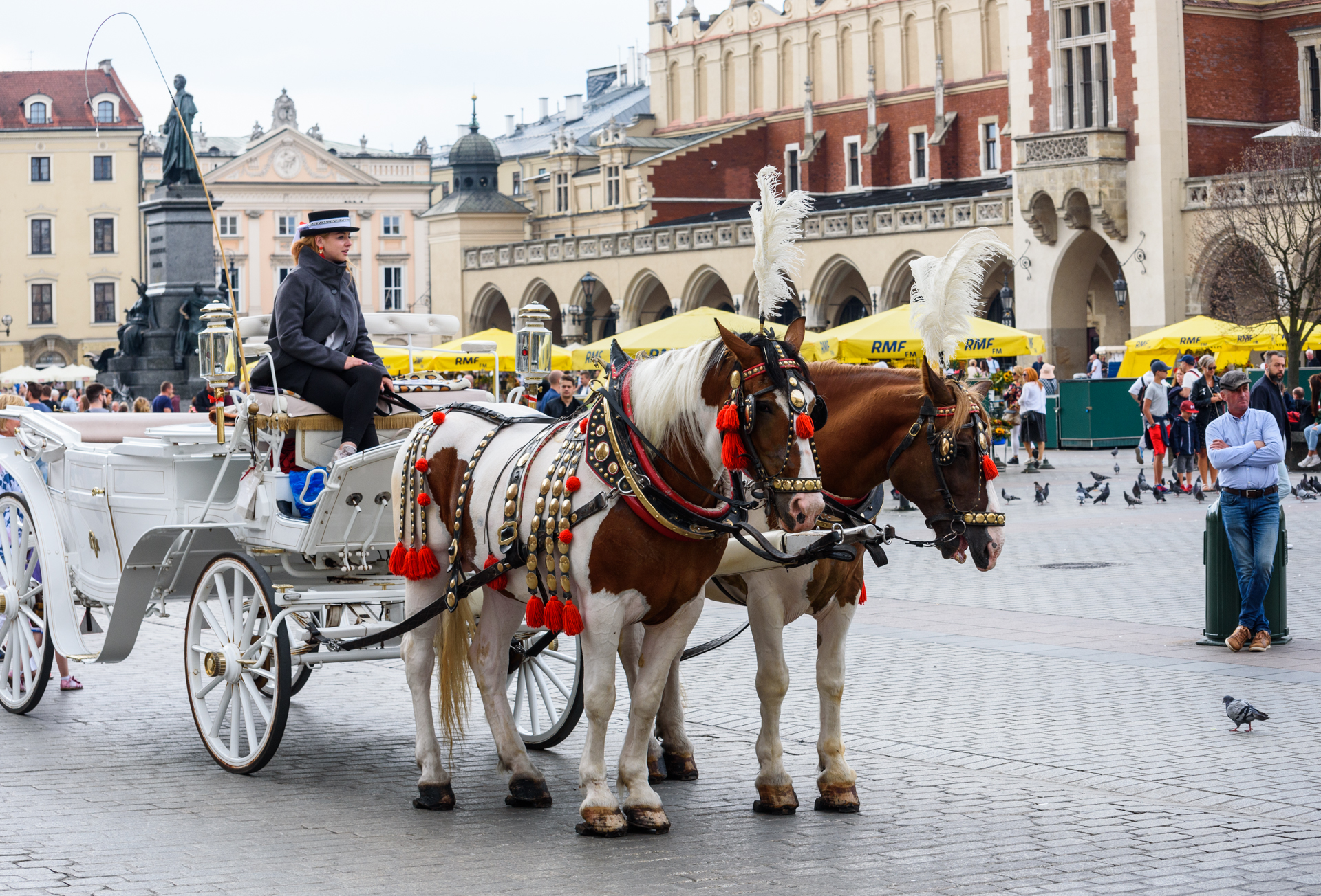Aún se conservan algunos vistosos carruajes para los turistas en la plaza mayor de Cracovia.