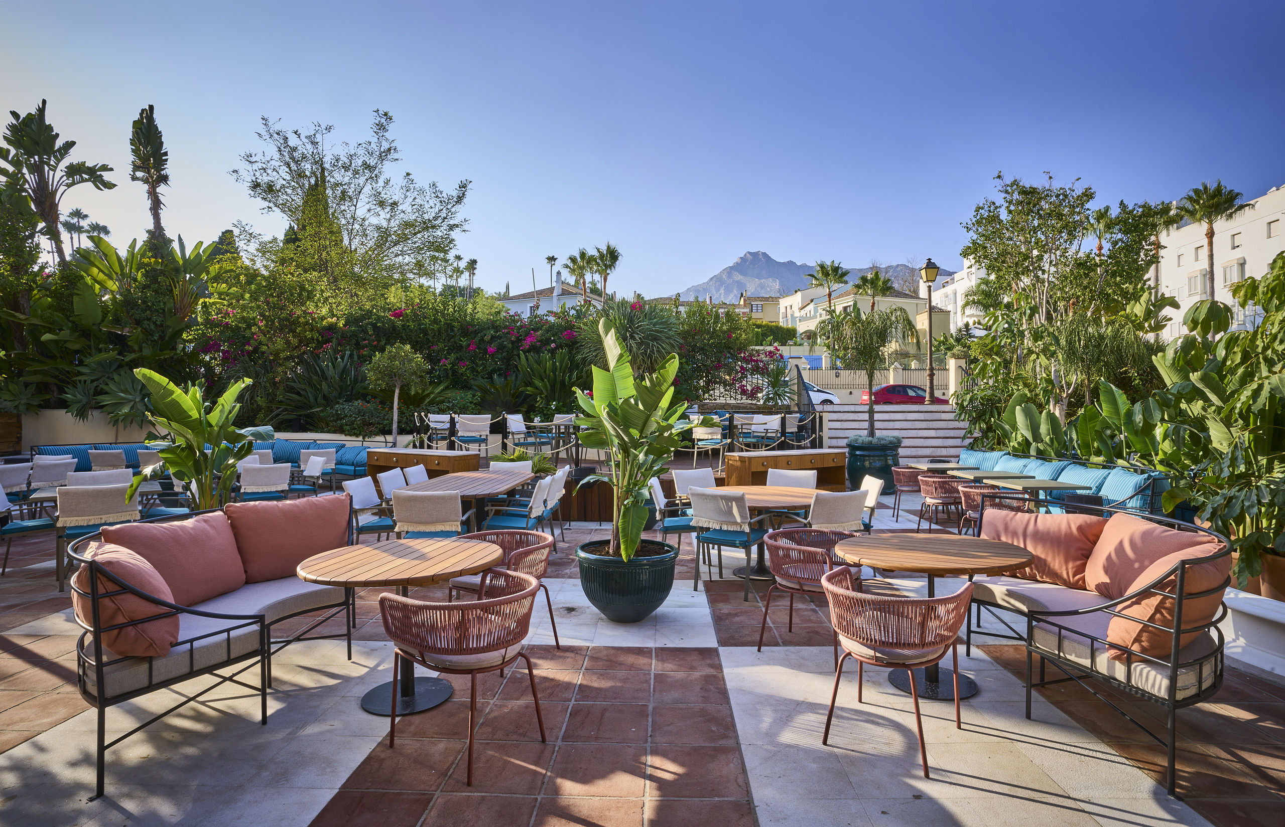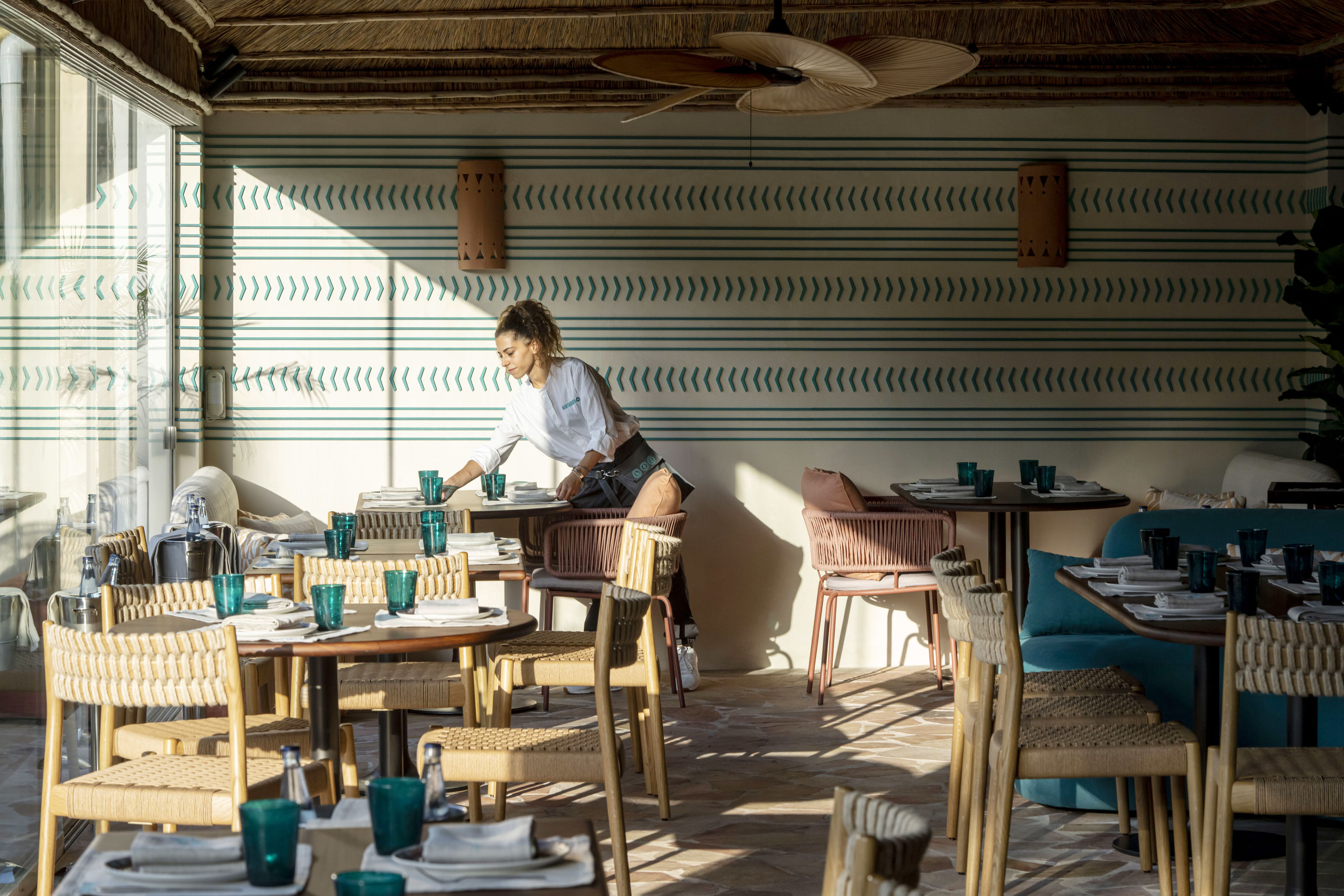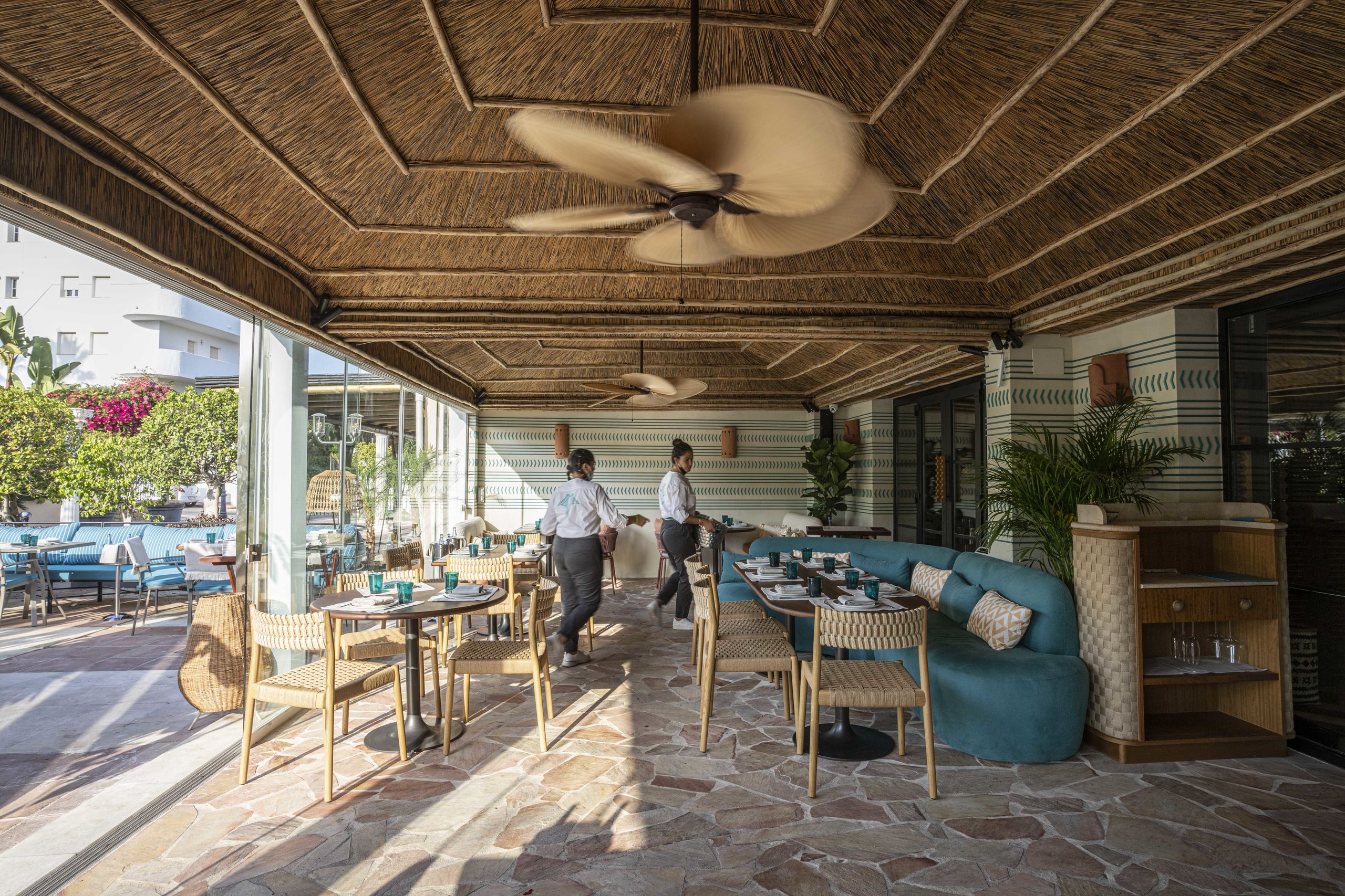 Vista de la terraza de Mantarraya Mx y con el restaurante al fondo.