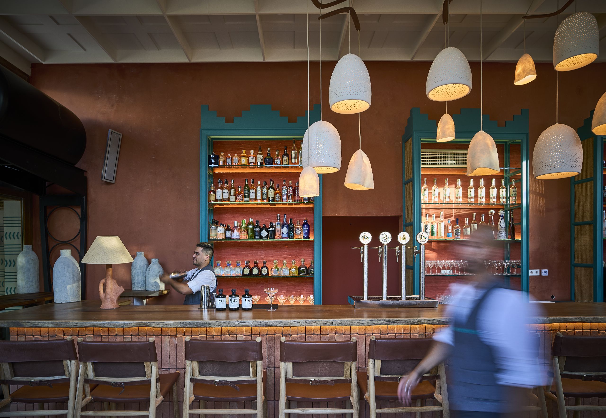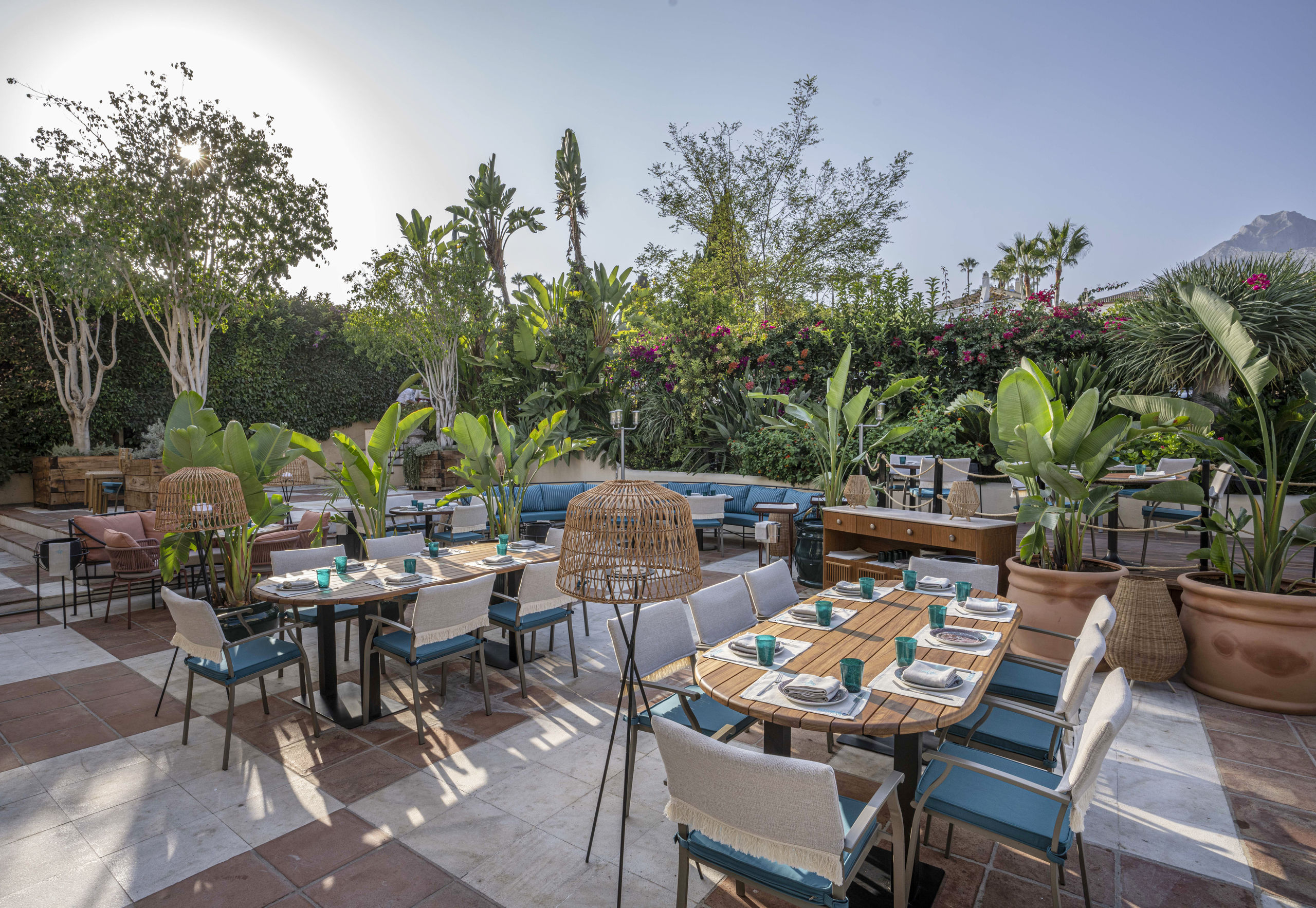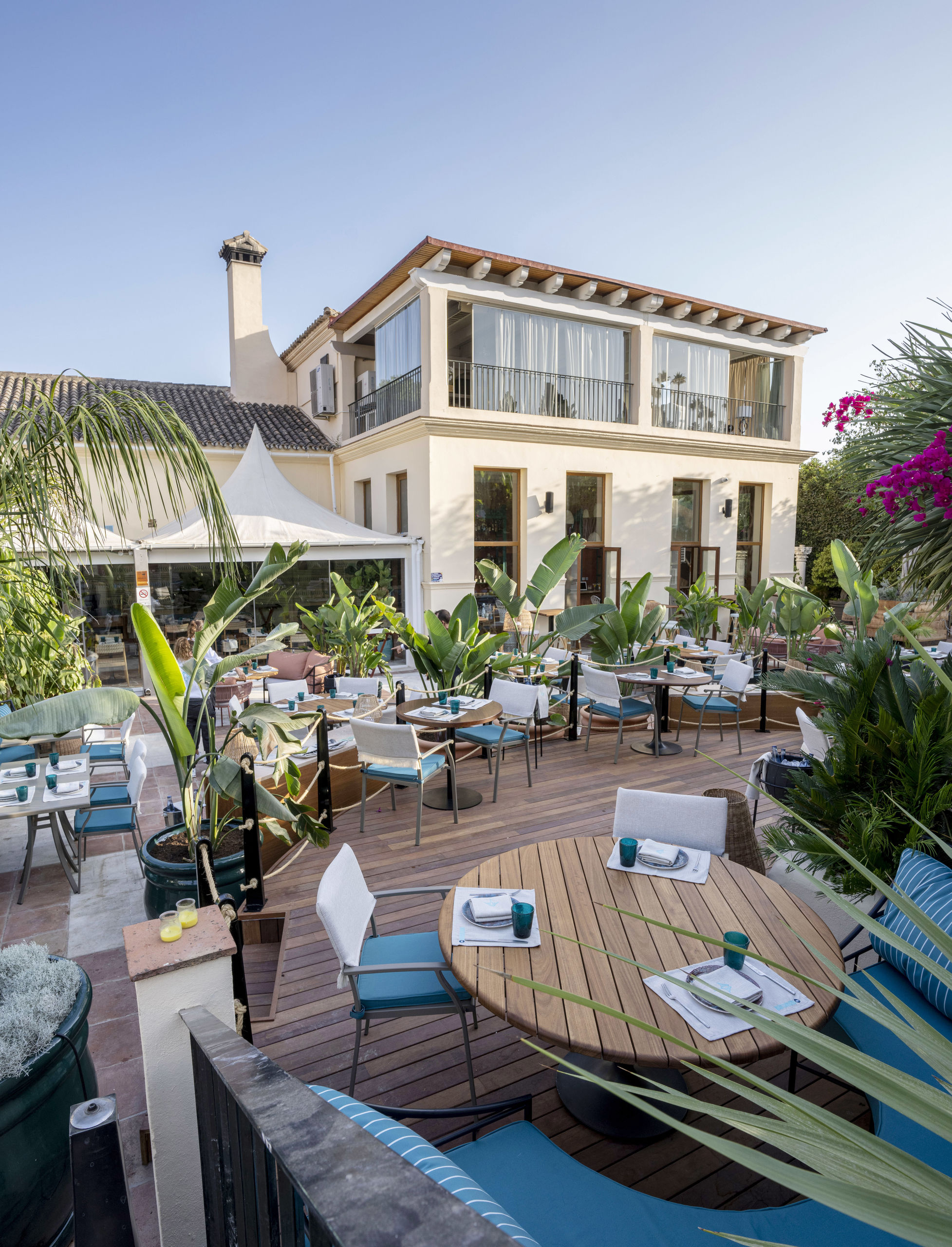 Vista de la terraza de Mantarraya Mx y con el restaurante al fondo.