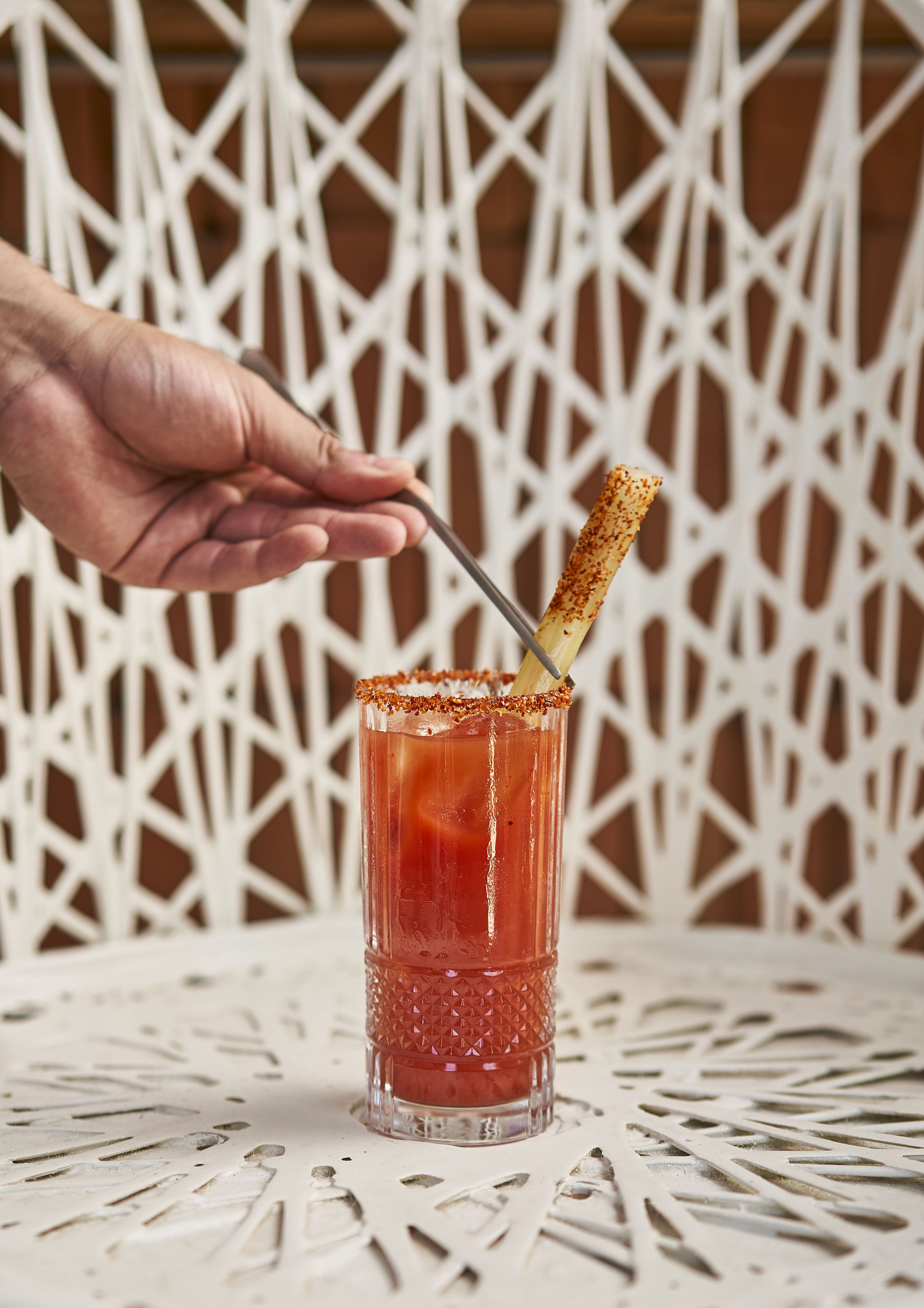 Cóctel Bloody María, con mezcal Casamigos macerado en apio y jalapeño, nuestro veneno –así lo llaman– zumo de tomate y lima.