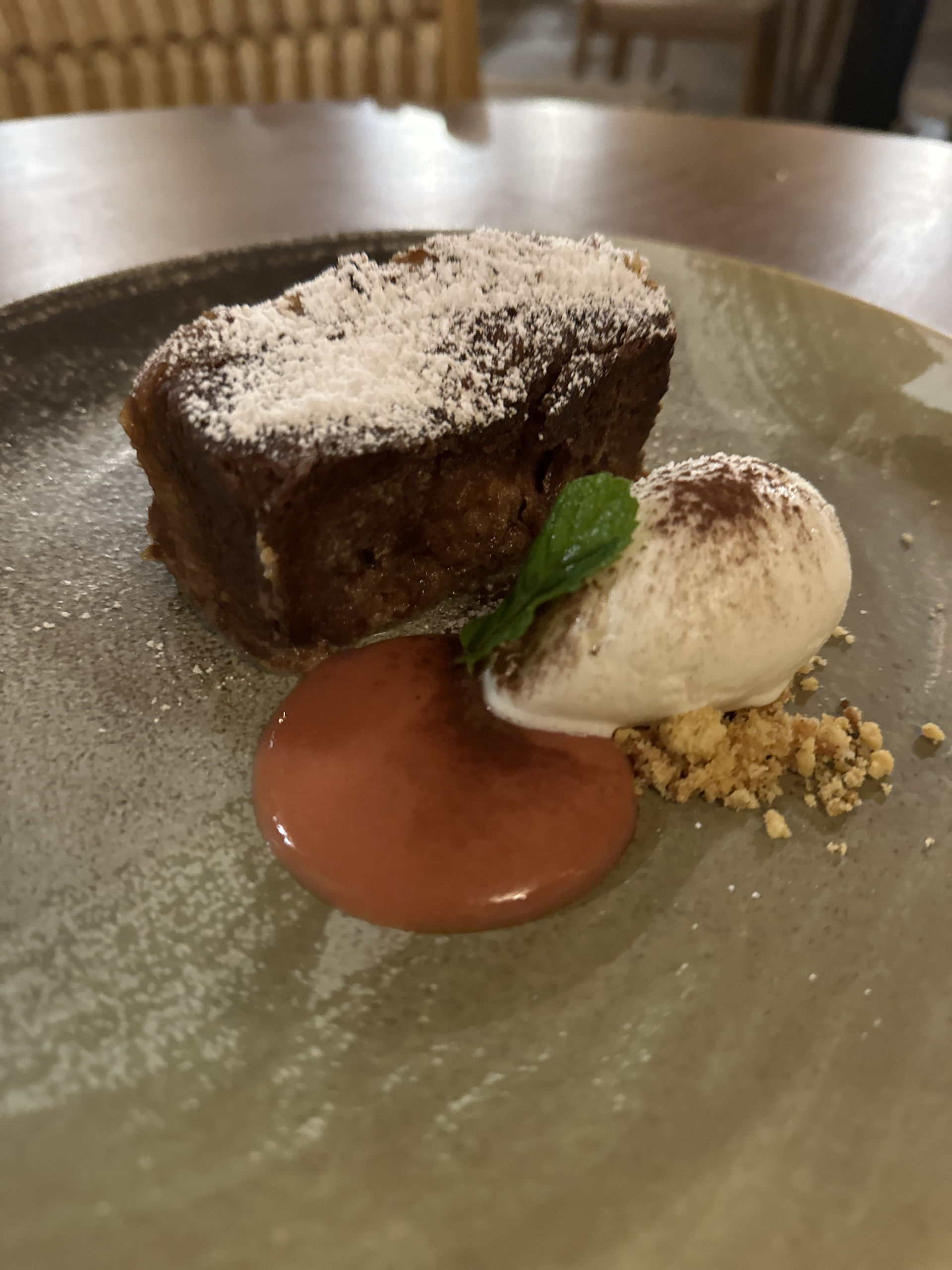 Torrija tres leches, con masa de cruasán bañada en tres leches de canela con salsa de guayaba.