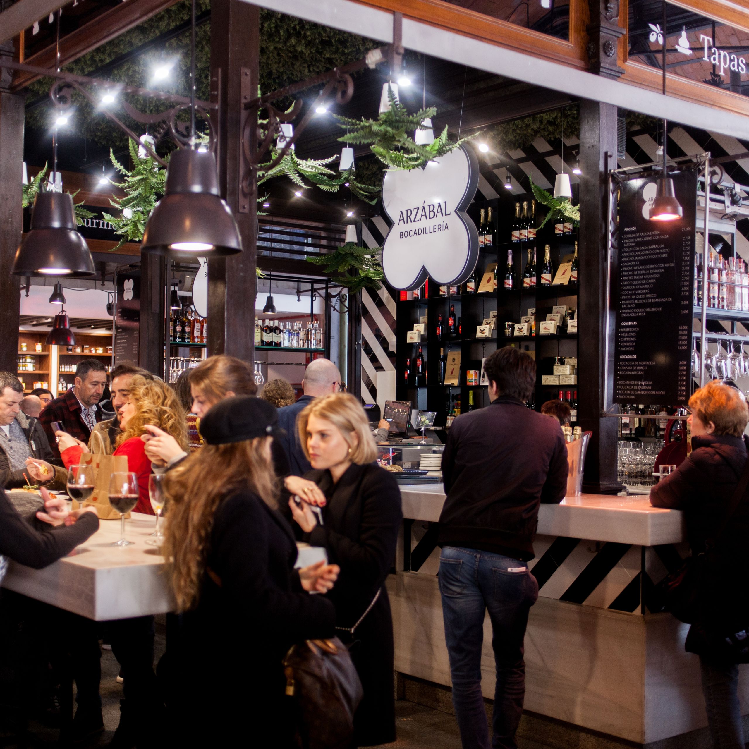 Ambiente en el puesto de Arzábal Market en el Mercado de San Miguel.