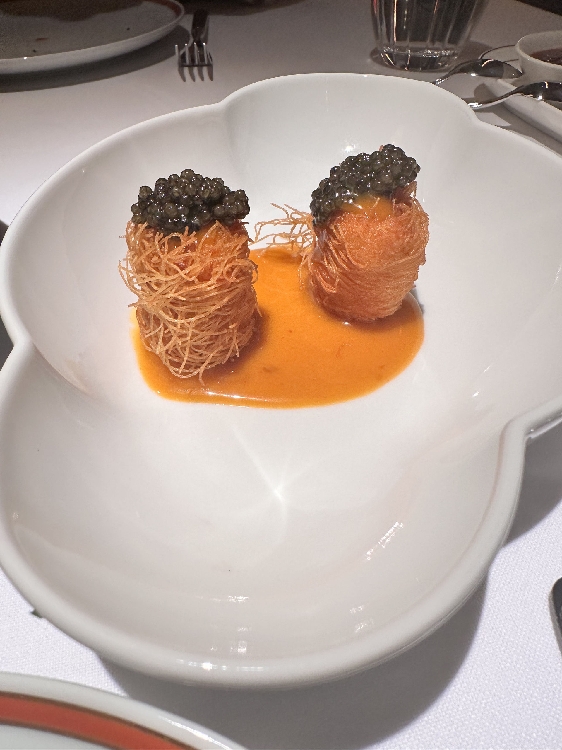 Hilo de seda black de Wagyu. Tiene ese nombre por la mezcla de harina de trigo, arroz y tapioca que le da esa textura.