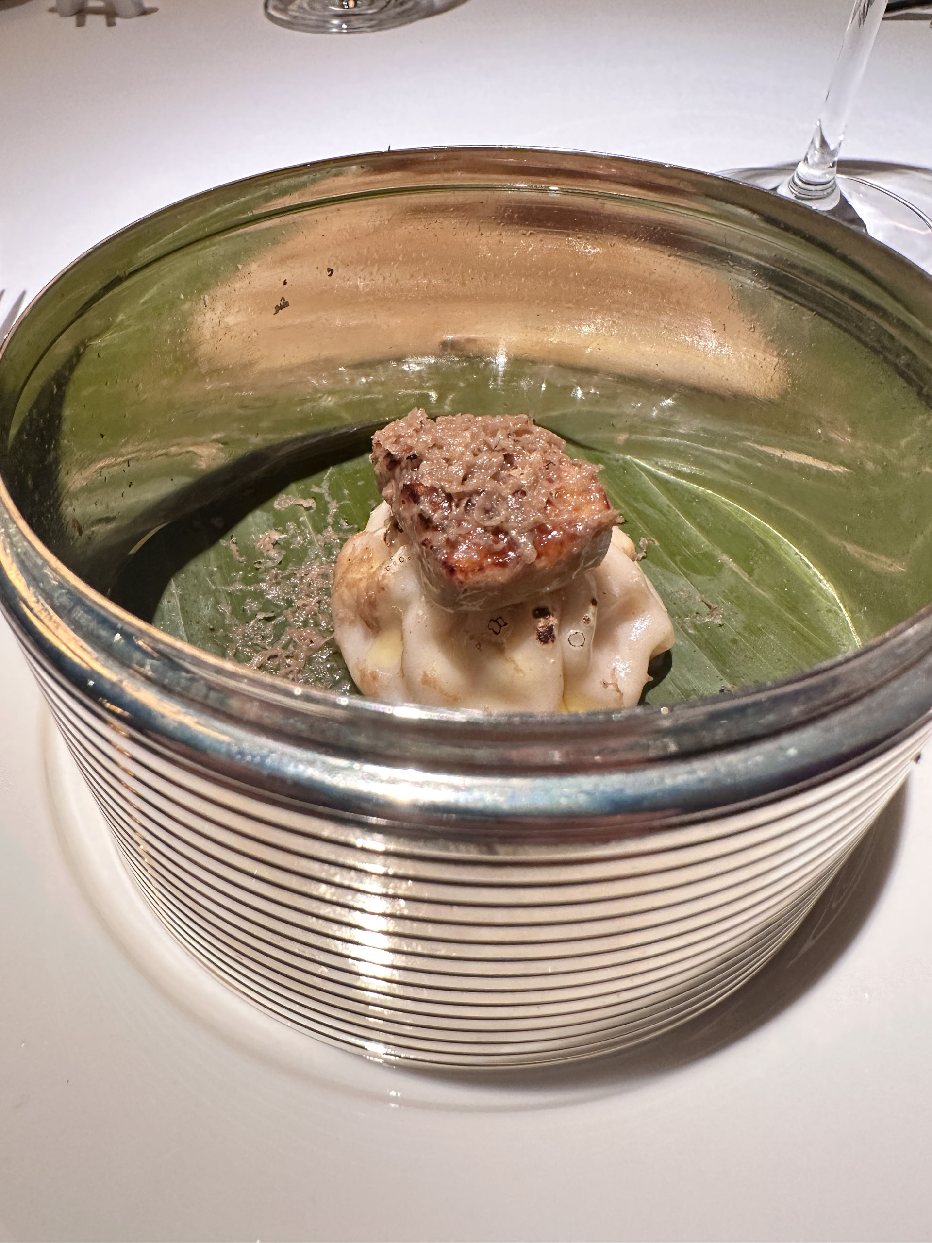 Exquisito xiao long bao con foie y trufa negra, que te lo metes entero en la boca –si te cabe– y dejas que el caldo del interior y su relleno inunde tu boca con su inigualable sabor.