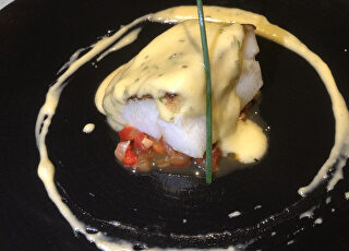 Un plato redondo que el sumiller del hotel nos lo marida con un extraordinario Palo Cortado Península de Bodegas Lustau. Y para refrescar la boca y limpiarla, un sorbete de limón emulsionado con un licor de bergamota y unas pinceladas de color acorde al menú picassiano.