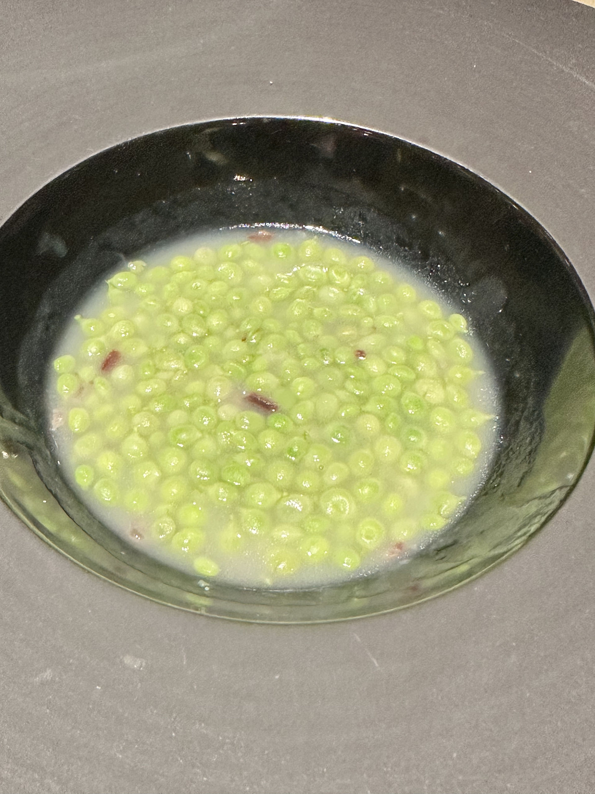 Así que con proveedores así, lo mejor es dejarse aconsejar por Luis y probar lo bien que tratan a las verduras y hortalizas en este céntrico restaurante de Madrid. Para abrir boca nos traen unos buenos mejillones en salsa, con un bicho carnoso y de un tamaño considerable y que nos sirve de preparación para los platos con base de verduras que llegan a continuación como las exquisitas borrajas que llegan a la mesa con un color y un sabor poco corriente. Al igual que los guisantes lágrima –que ya están fuera de temporada–, conocidos como el caviar del campo y que los preparan con su propio caldo y un toque perfecto de jamón ibérico.