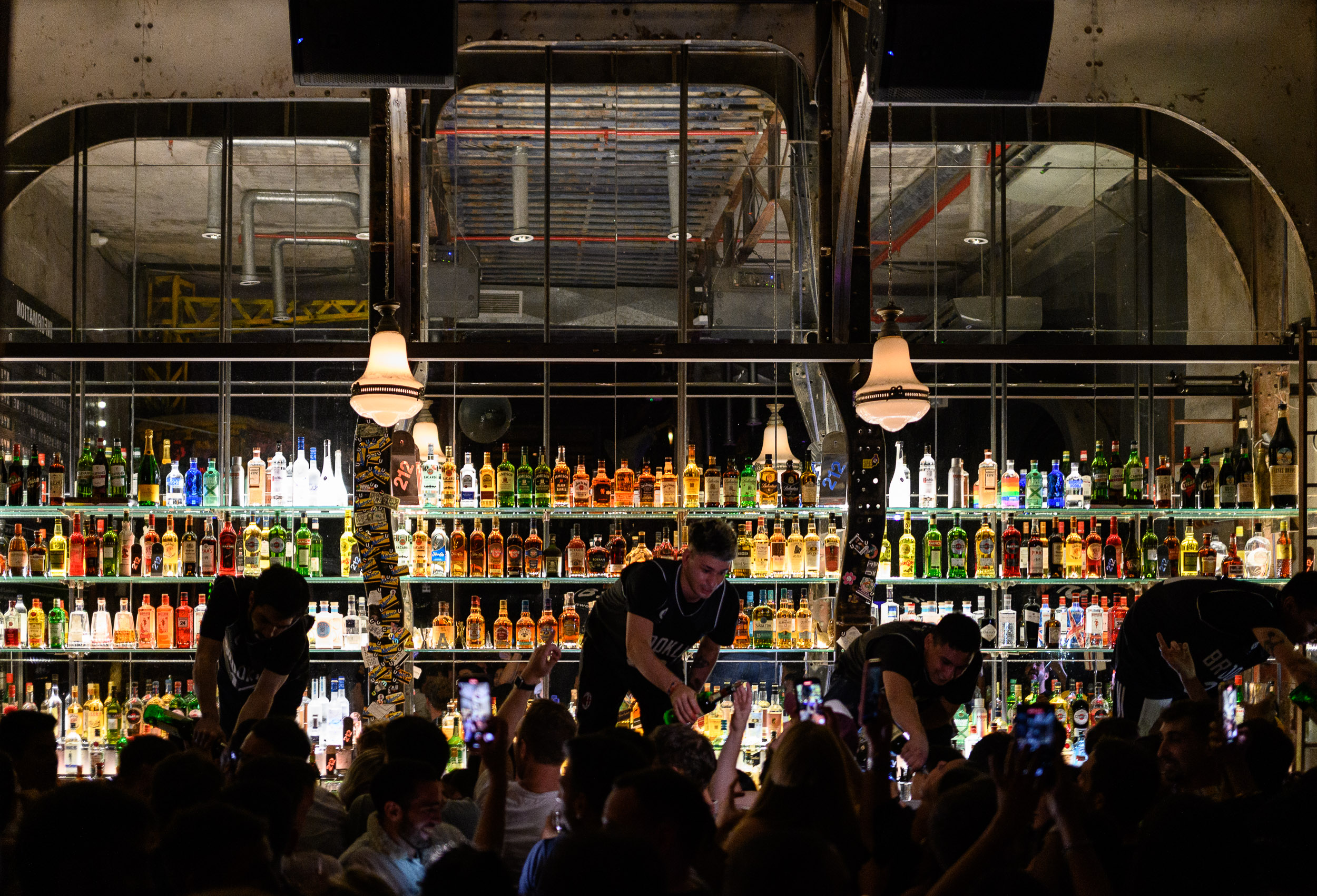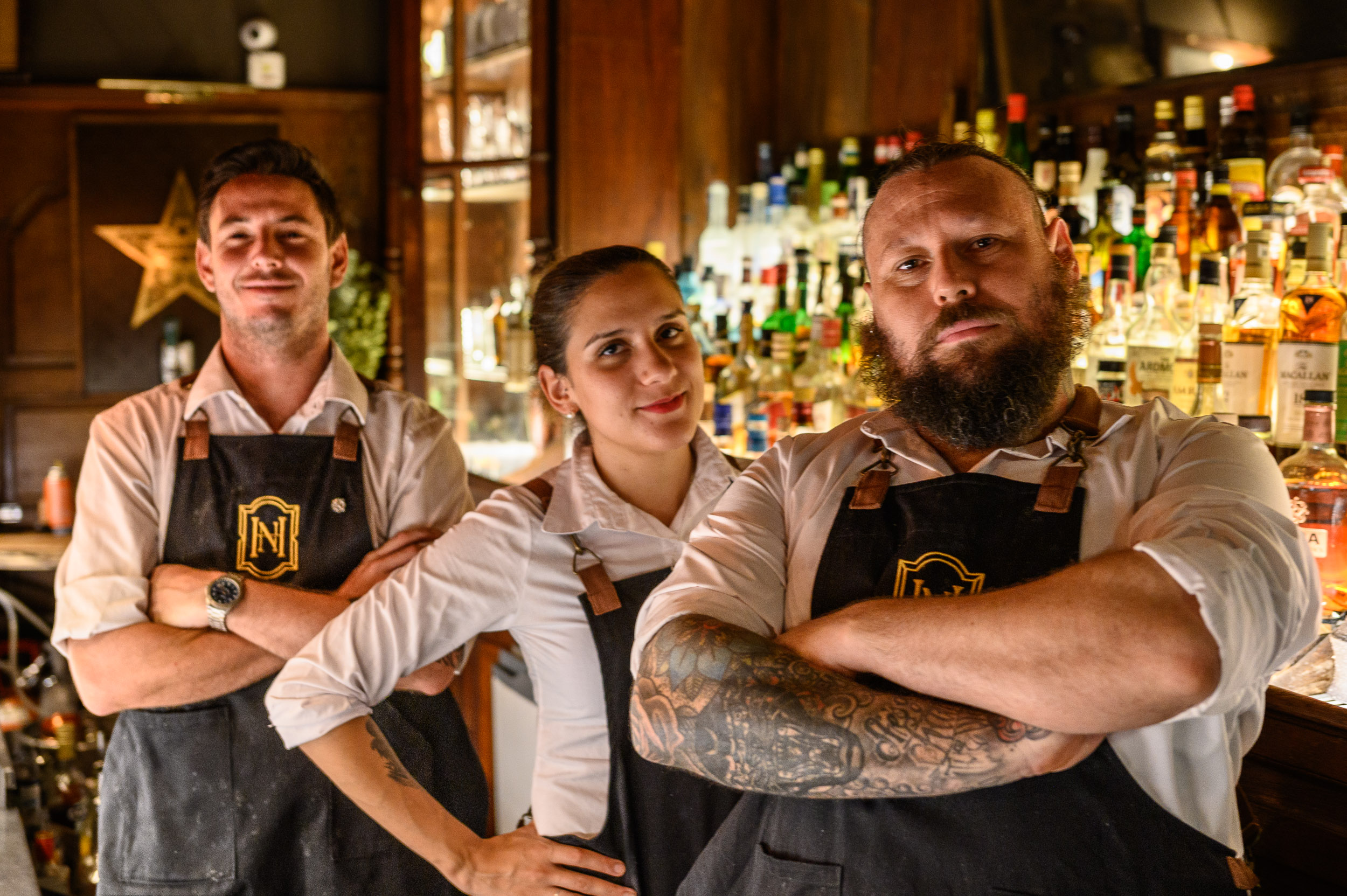El personal de barra del Nicky Harrelson, un club para viajar en el tiempo desde Buenos Aires.