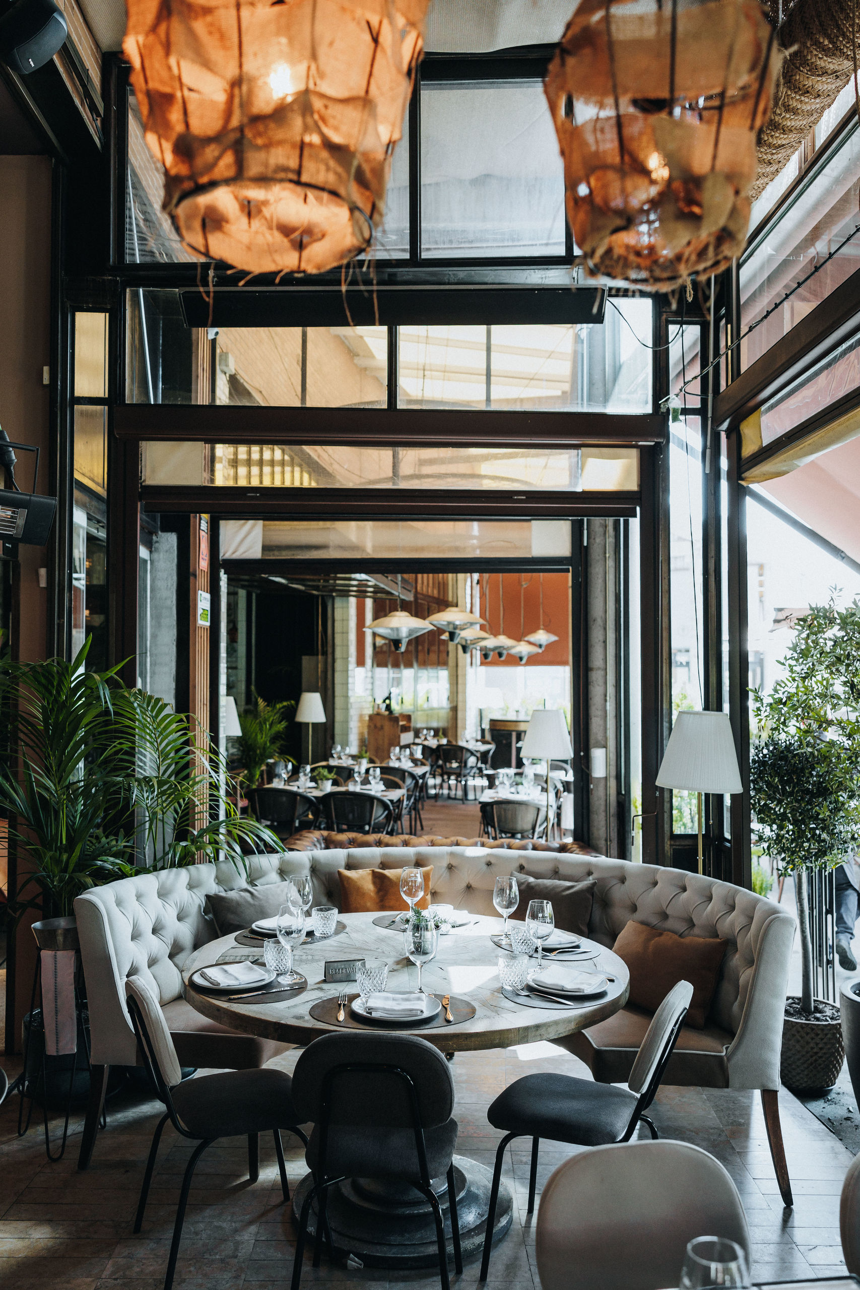 Tiene otros dos espacios para mesas bajas, algunas de ellas con cómodos sofás semicirculares.