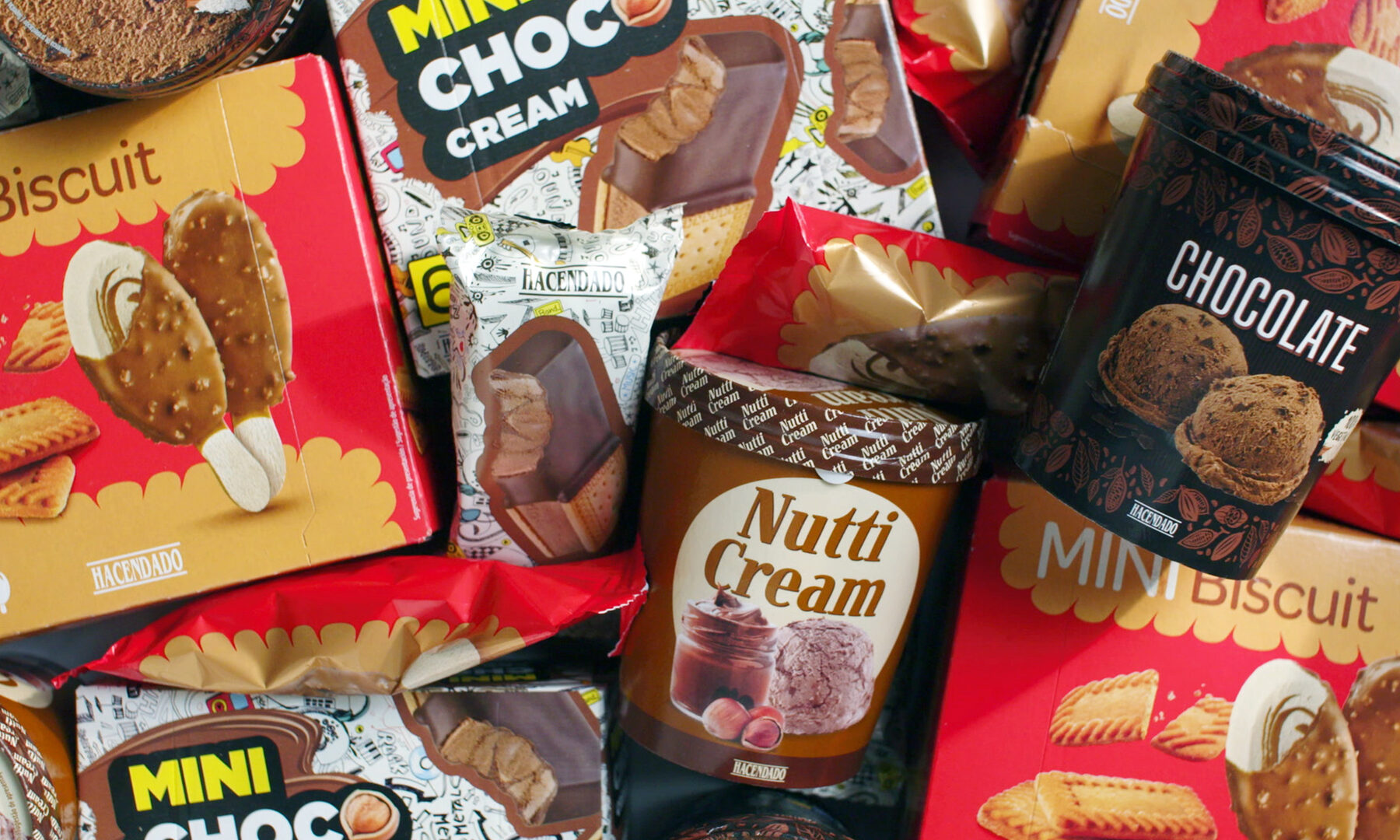Los nuevos Mini Choco Cream son mitad bombón y mitad sándwich, combinando crema de chocolate y avellanas con una salsa interior, cobertura cremosa de cacao y galleta tipo María. Por su parte, el helado Mini Biscuit es un bombón con helado de crema de galleta especiada, salsa en su interior y cobertura crujiente con trozos de galleta caramelizada.