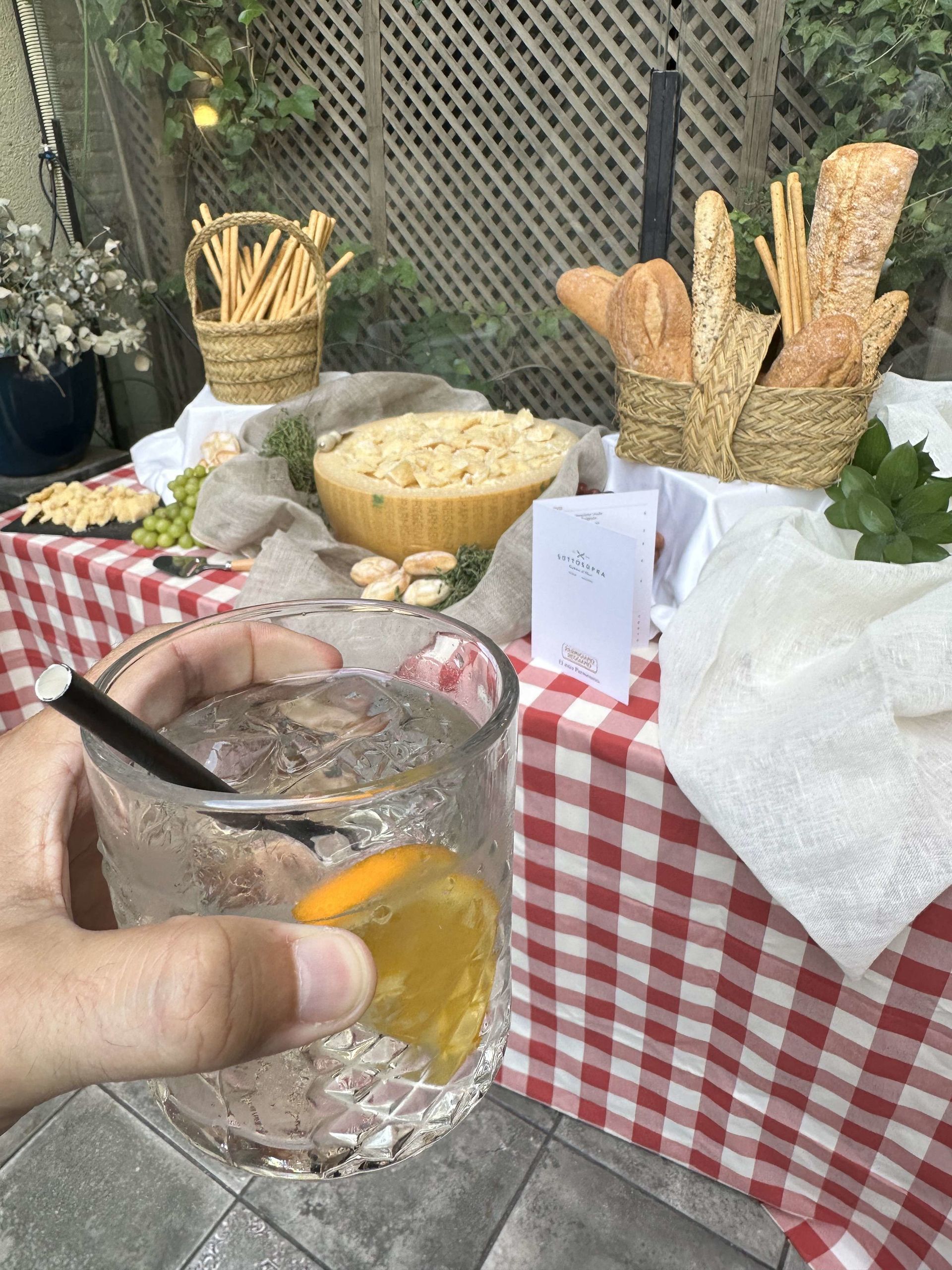 El Bicicleta Spritz con la mesa de la presentación del 'aperitivo' italiano en la terraza de Sottosopra.