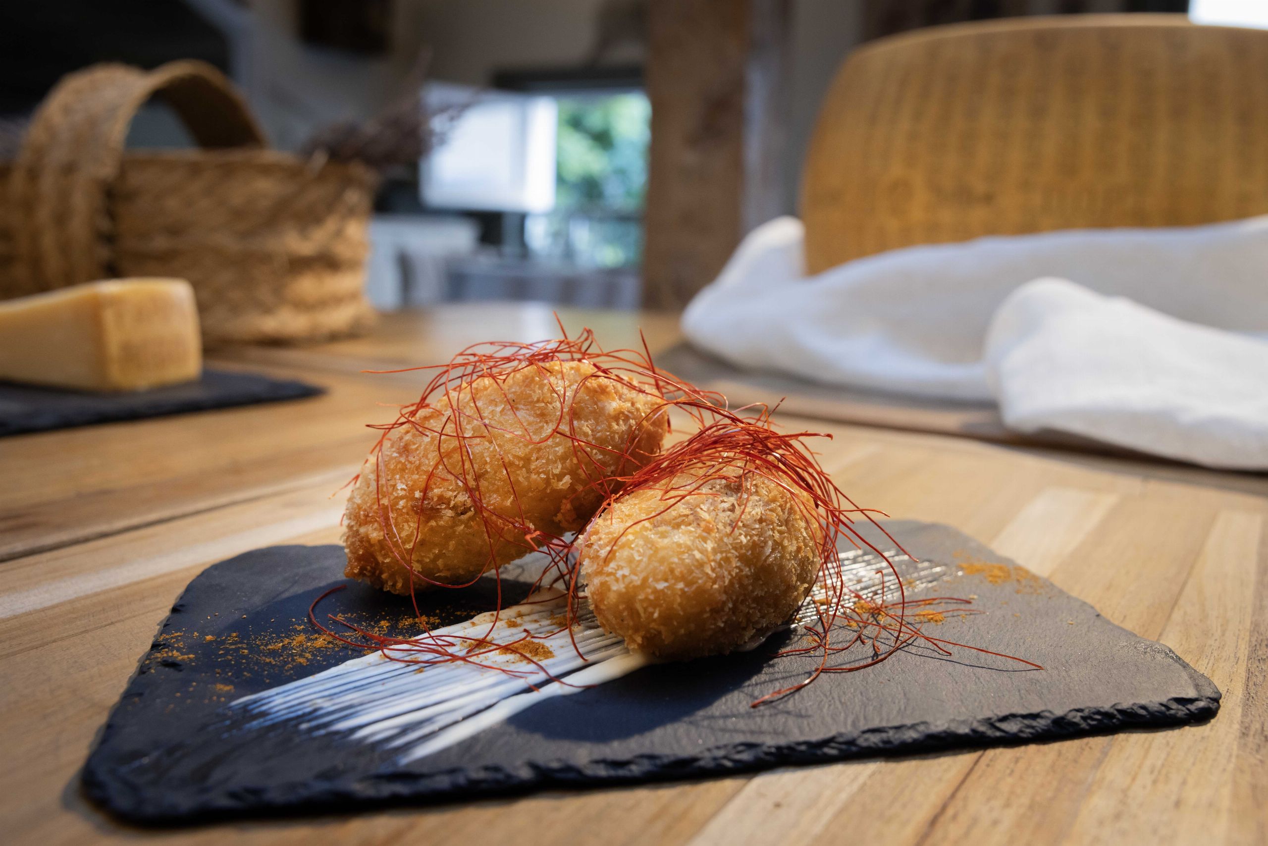 Suppli’ con Parmigiano Reggiano, que son las tradicionales croquetas italianas de arroz de Roma.