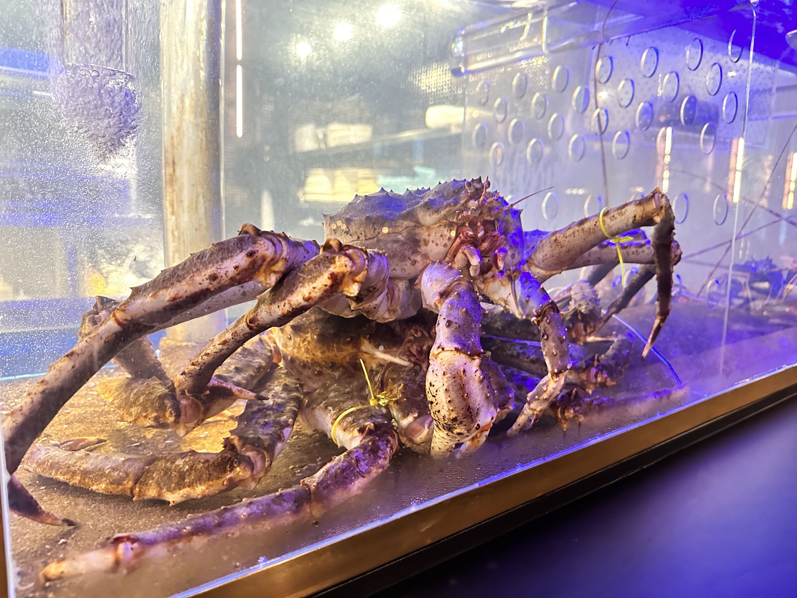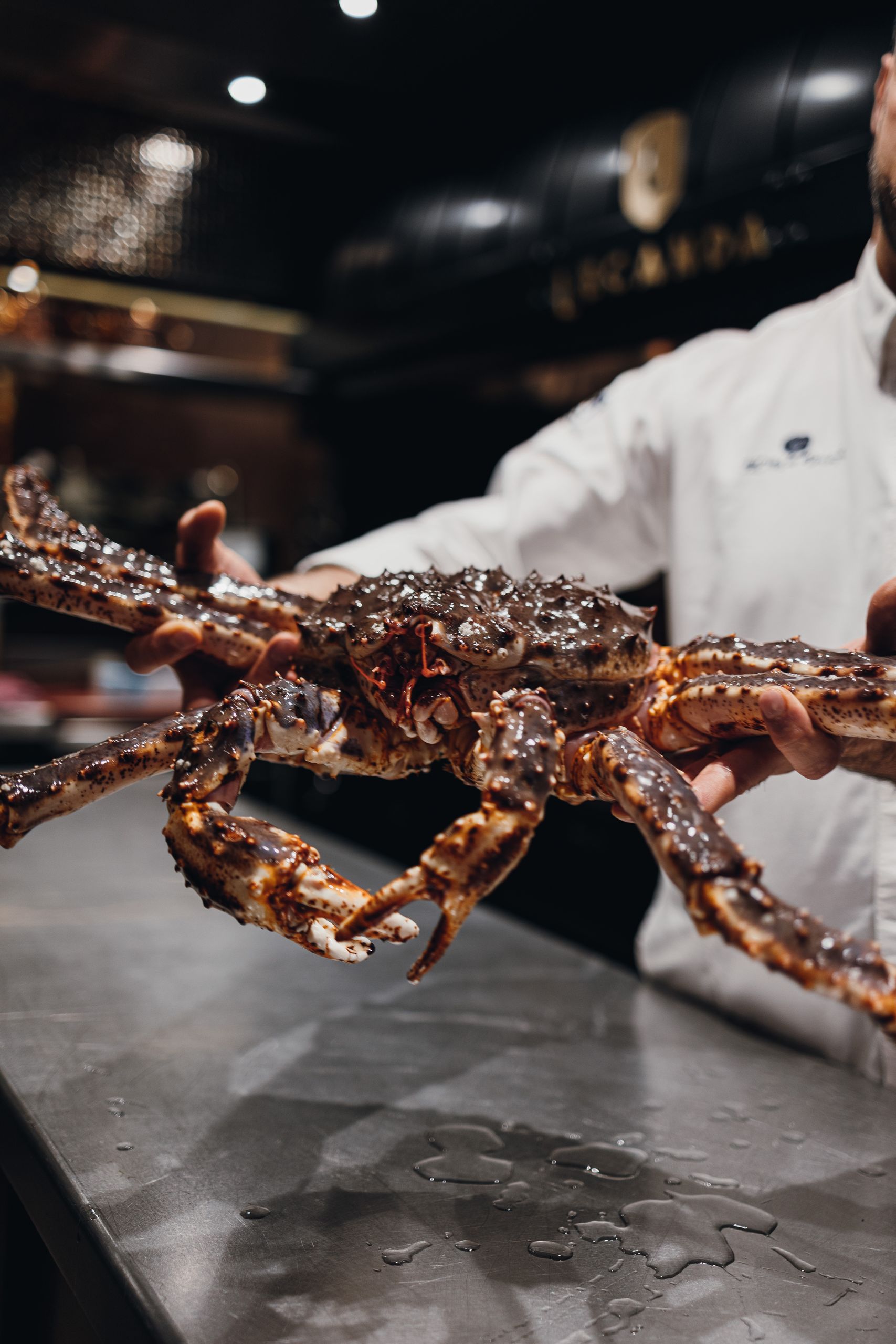 El imponente Cangrejo Real, un depredador voraz que nos conquista por su delicada textura y su jugosidad –a medio camino entre la centolla y el buey de mar–, pero sobre todo por ese punto dulce que apreciamos principalmente a partir de ejemplares vivos.