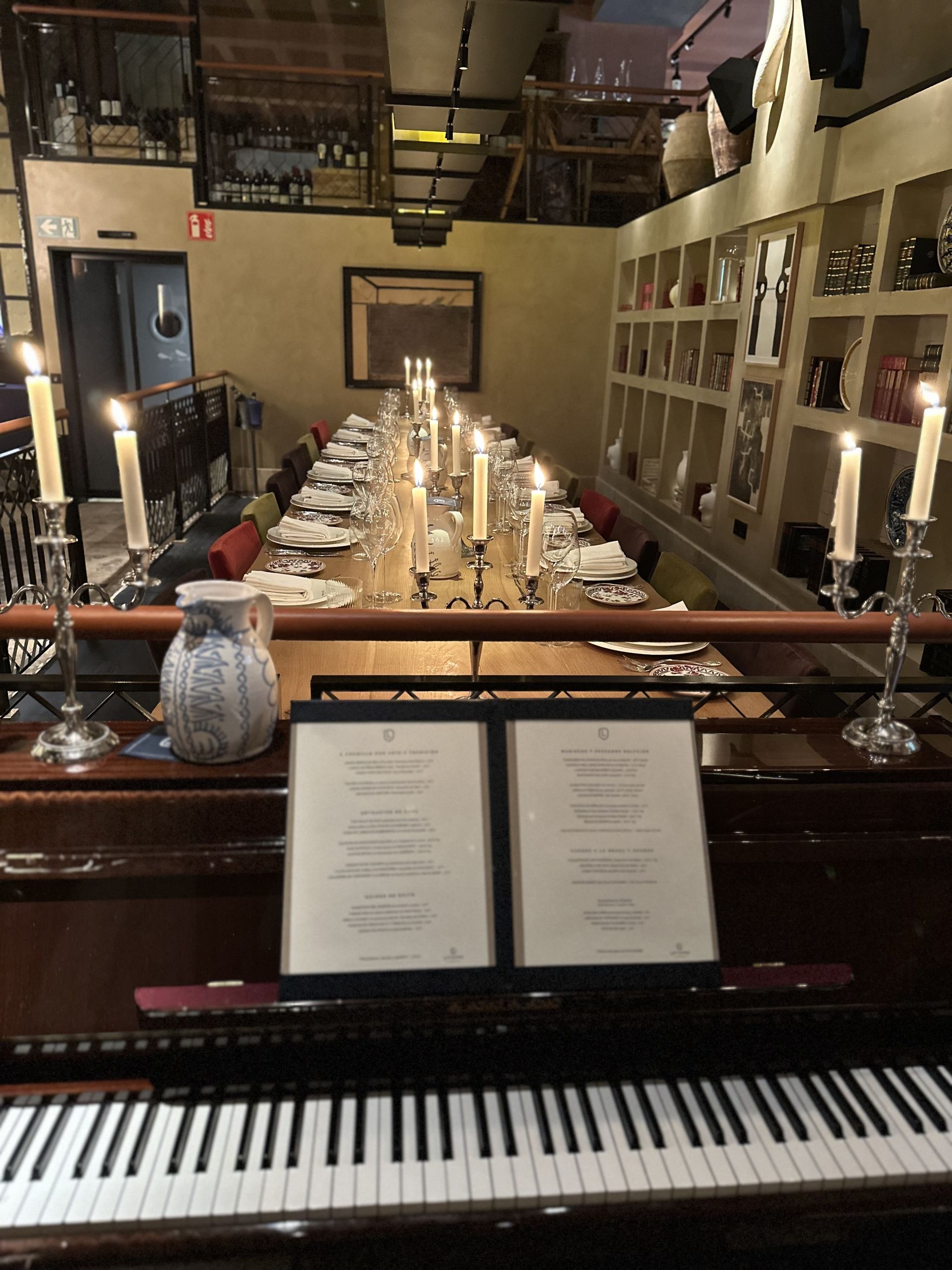 La mesa está presidida por un piano para amenizar la velada.