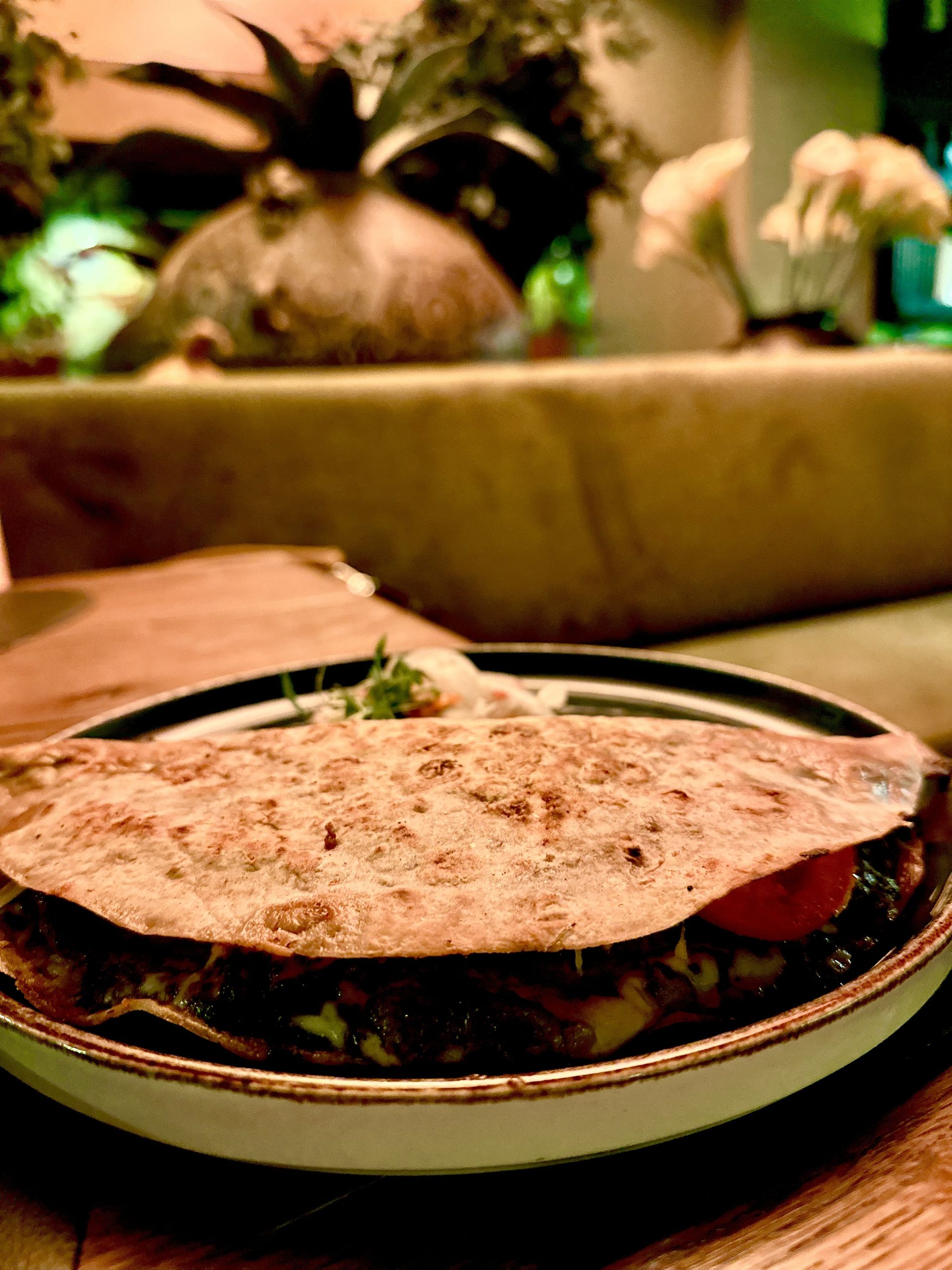 Y sus icónicos tacos árabes (7,50€), considerados como los precursores del taco al pastor, de influencia árabe y que llevan lagarto Ibérico marinado con hierbas aromáticas, en tortilla de trigo, salsa chipotle y cebolla asada. Una absoluta delicia.