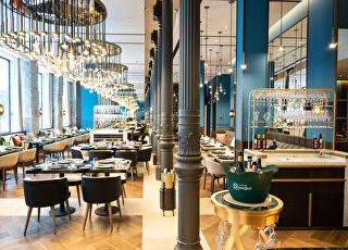 Para el desayuno buffet, desde las 6.30 de la mañana, el panadero Andrés Lesmes y el repostero Juan José López se encargan de elaborar a diario de manera artesanal los panes y la bollería. También encontrarás productos locales madrileños de la mejor calidad y embutidos cortados al momento como el lomo o jamón Cinco Jotas, además de otras esepcialidades italianas como la mortadela trufada o el pastrami. Por no olvidar la zona americana con opciones calientes como crepes o pancakes.