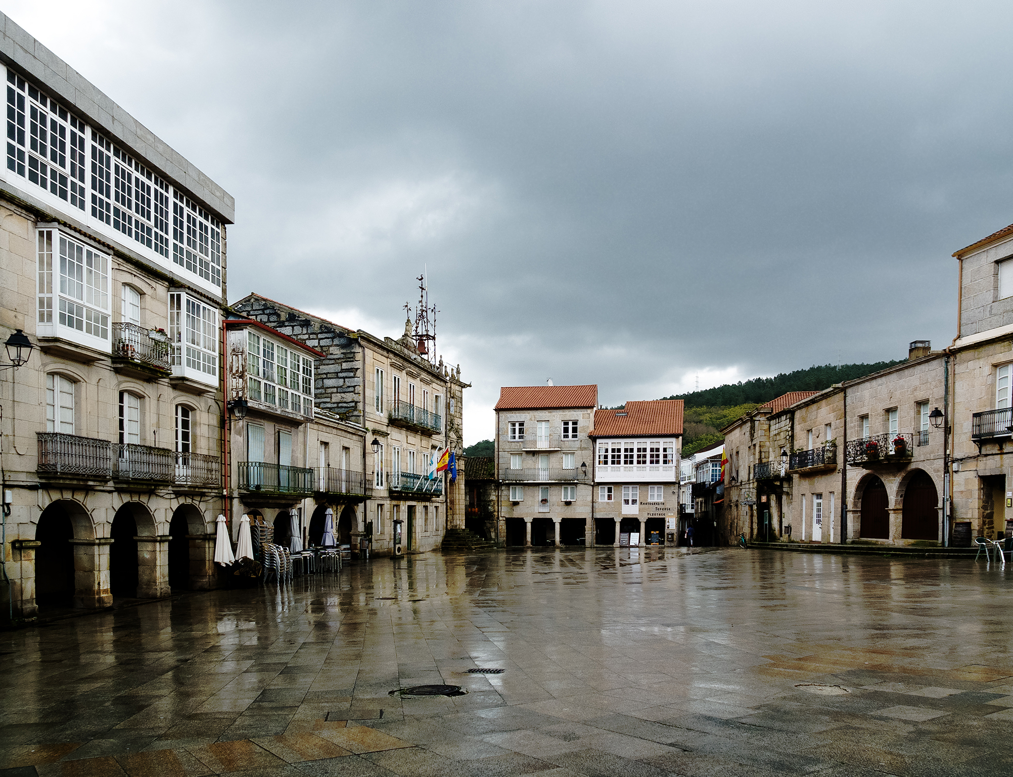 En esta bonita plaza con soportales se encuentra el ayuntamiento y el Pazo de los Condes de Ribadavia, con la oficina de turismo.