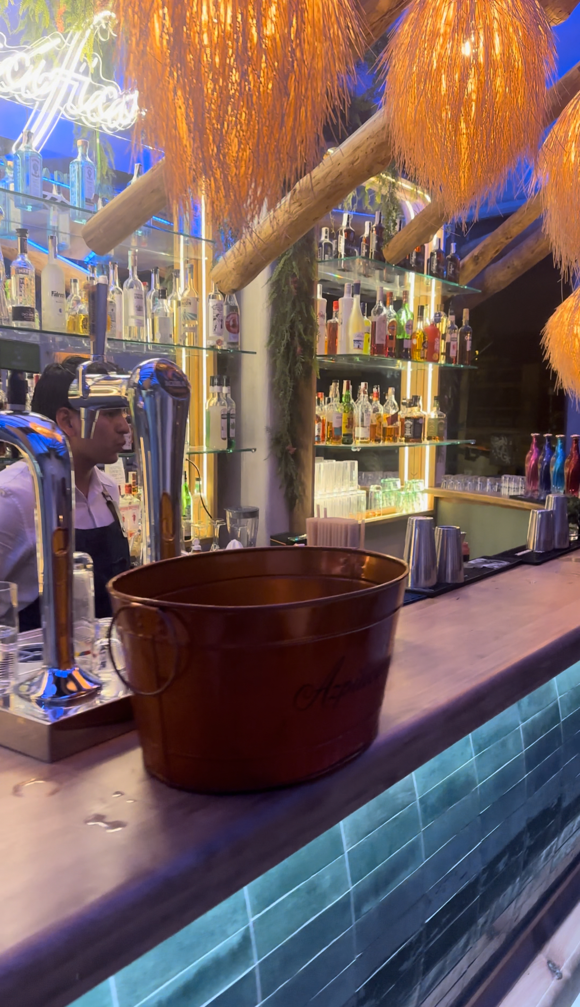 La decoración de Pacífico, antojería del mar hará que te sientas como si estuvieras de vacaciones en un club de playa.
