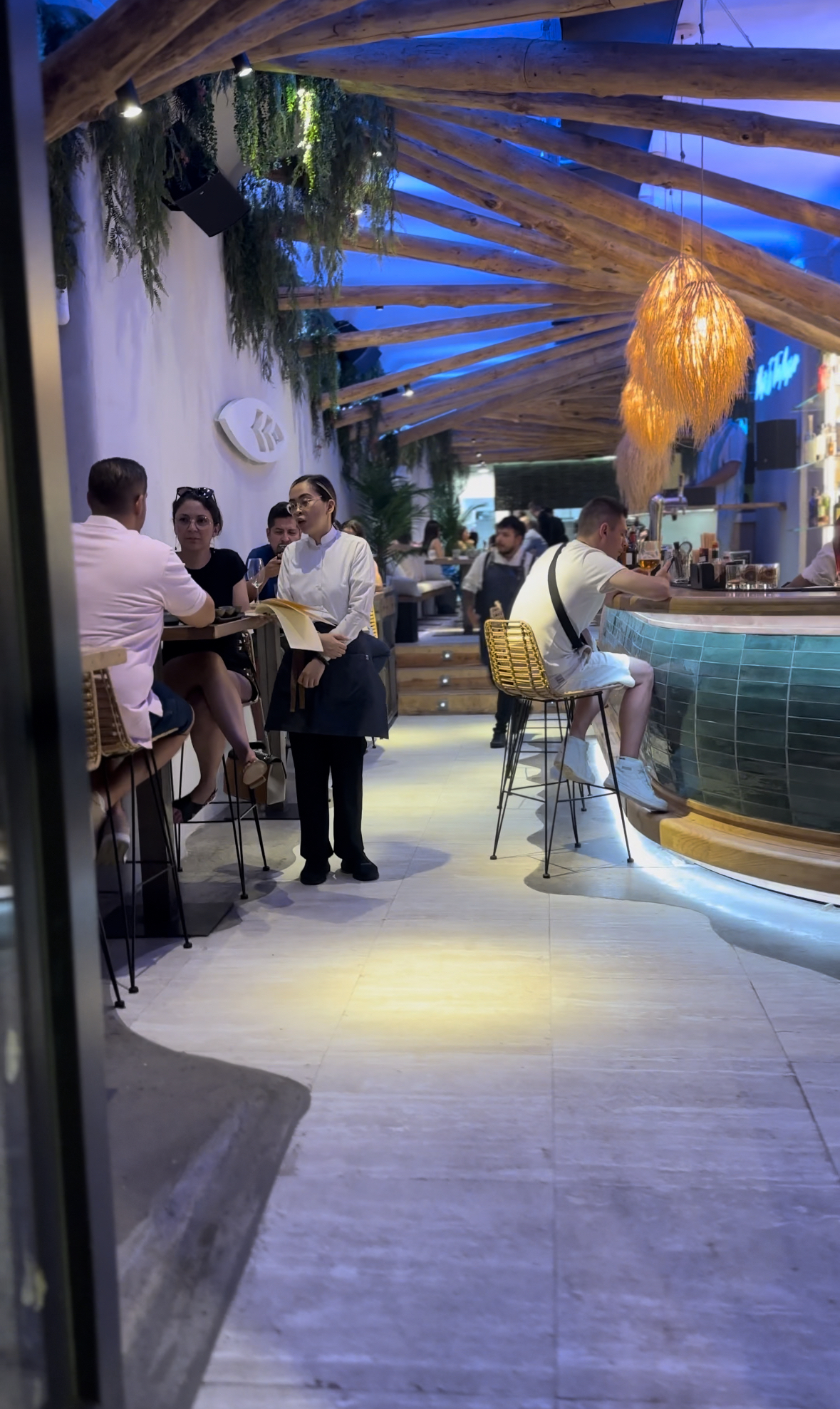 Nada más entrar, una amplia barra y mesas altas para disfrutar de la cocina de Pacífico, de sus cócteles y de la música en directo a cargo de los DJ´s.