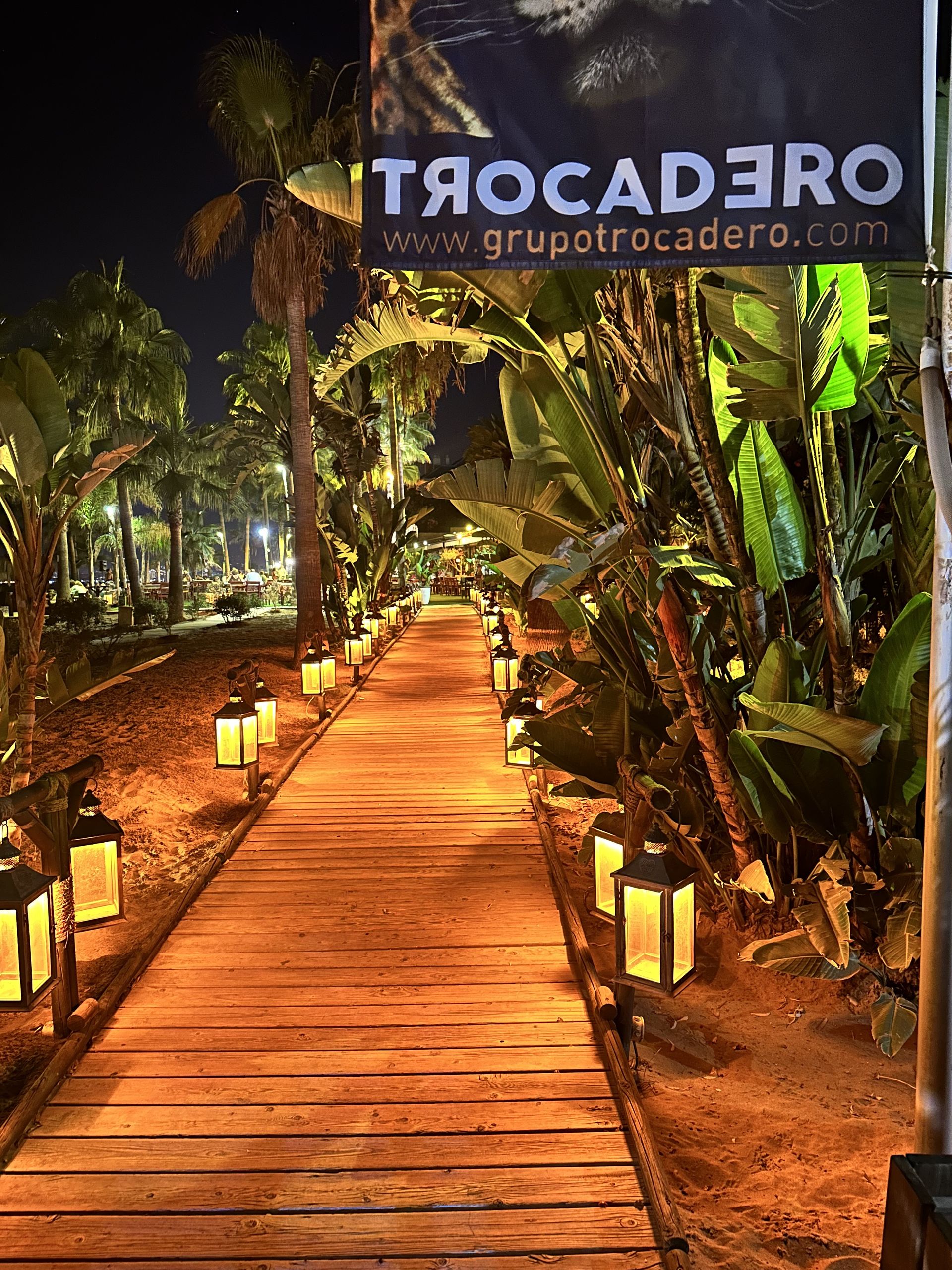 Trocadero Arena está situado en la Playa de Río Real (Marbella) y es un restaurante en el mar, sin perder la esencia de lo que es un chiringuito.