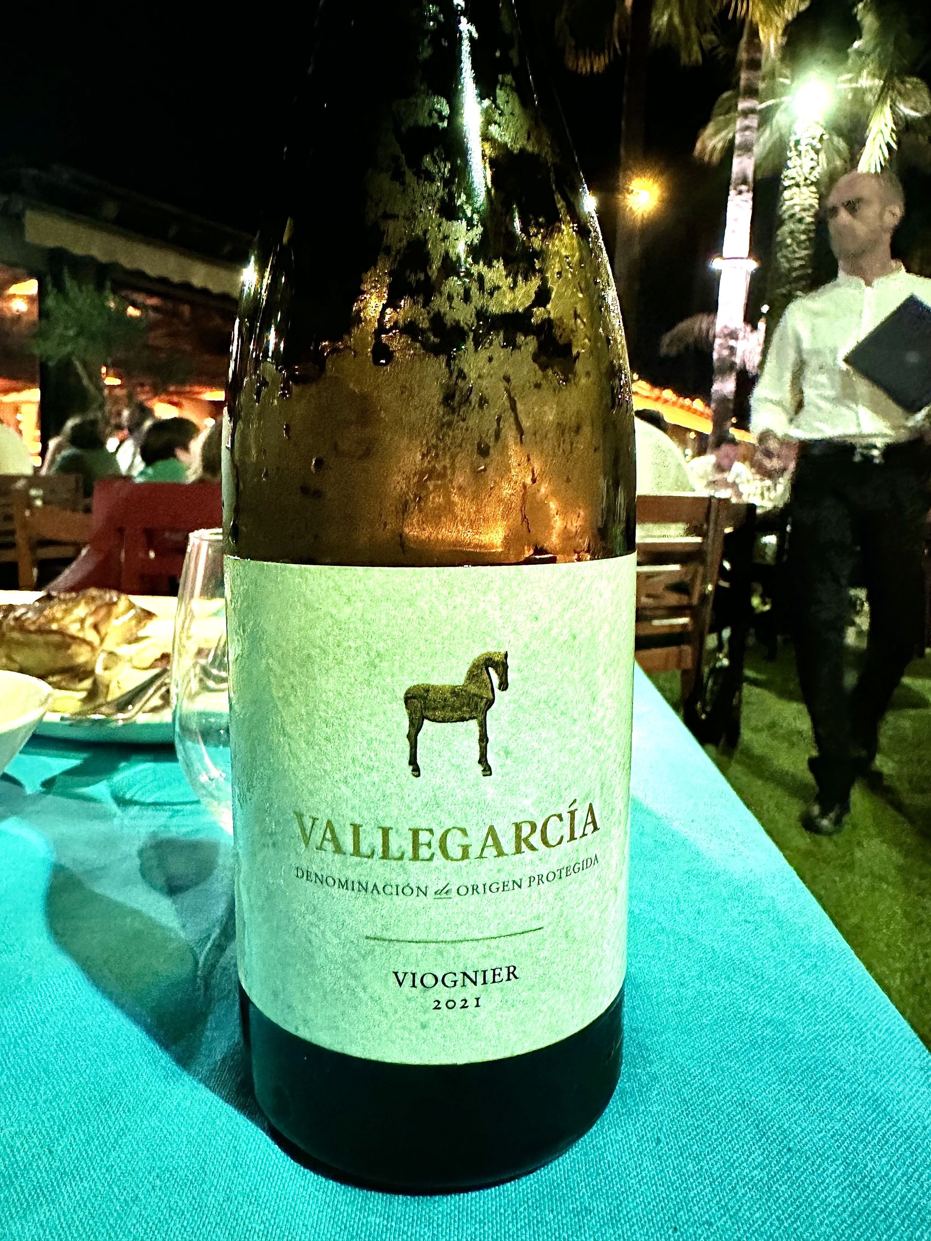 En Trocadero Arena también se cuida la bodega y de ello se encarga José Antonio Melgar, sumiller manager del Grupo Trocadero y que nos invita a salirnos de los vinos clásicos de las habituales denominaciones de origen para disfrutar durante toda la cena de un maravilloso vino blanco Vallegarcía Viognier 2021, de Pago de Vallegarcía con Denominación de Origen Protegida de la zona de los Montes de Toledo.