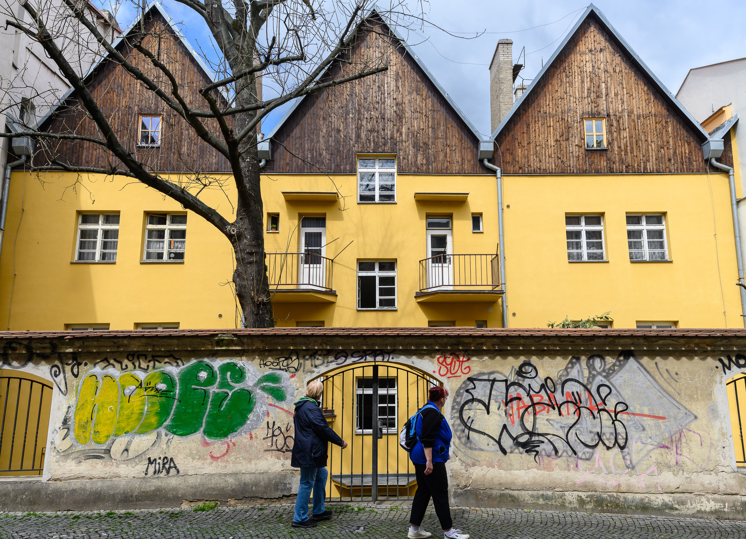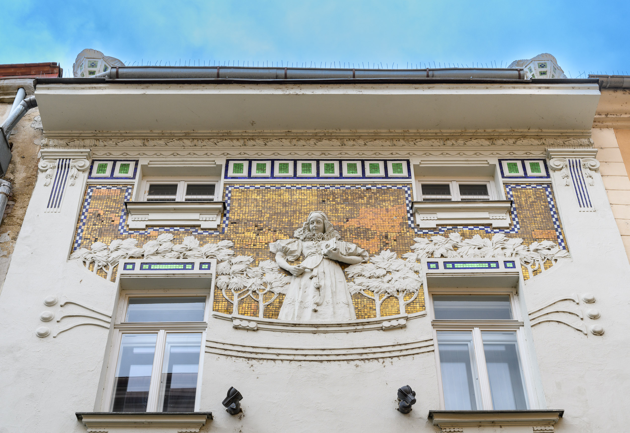 Una bonita fachada de Olomouc, hecha para una antigua tienda de fotografía.