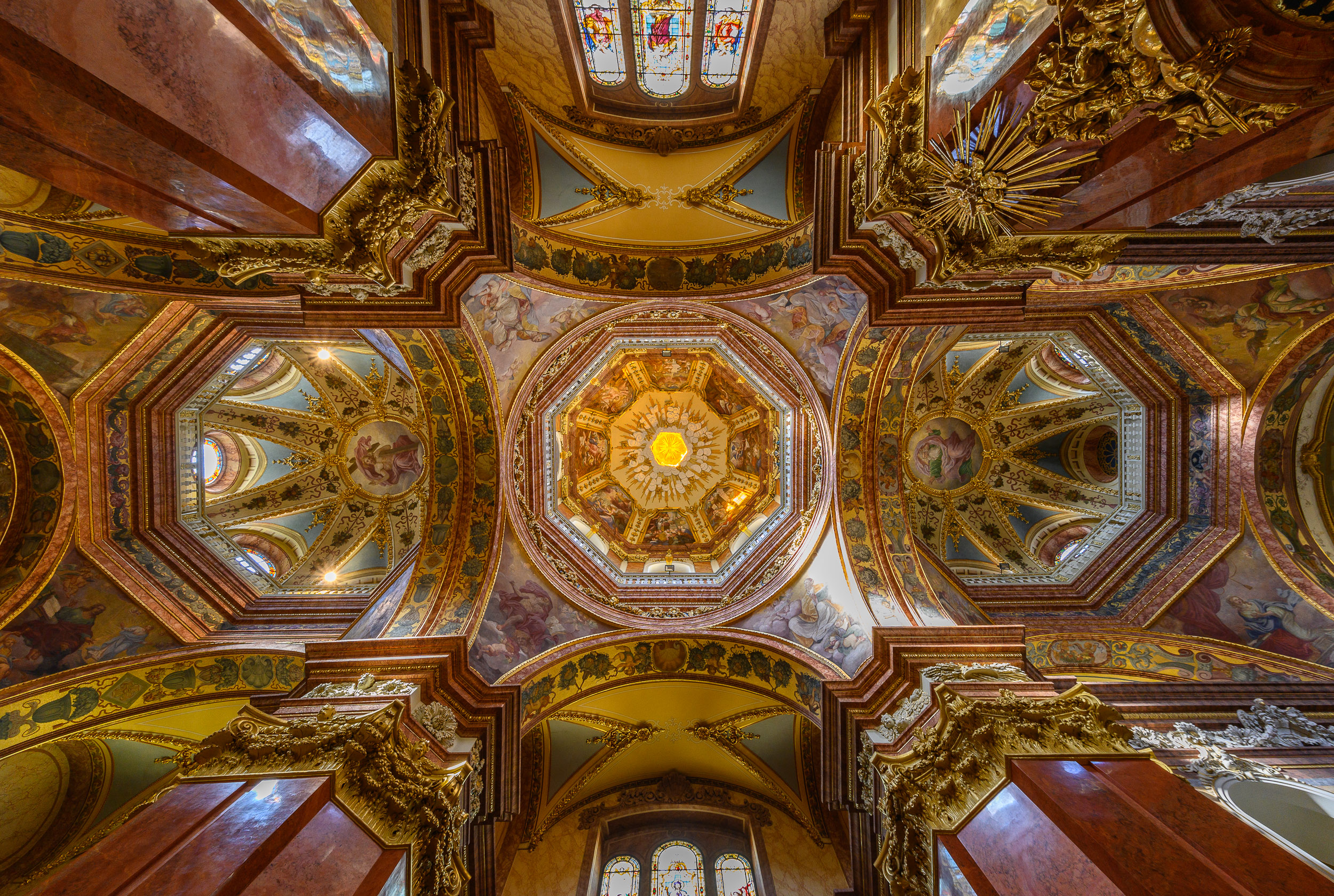 El espectacular techo con tres cúpulas de la barroquísima iglesia de San Miguel.