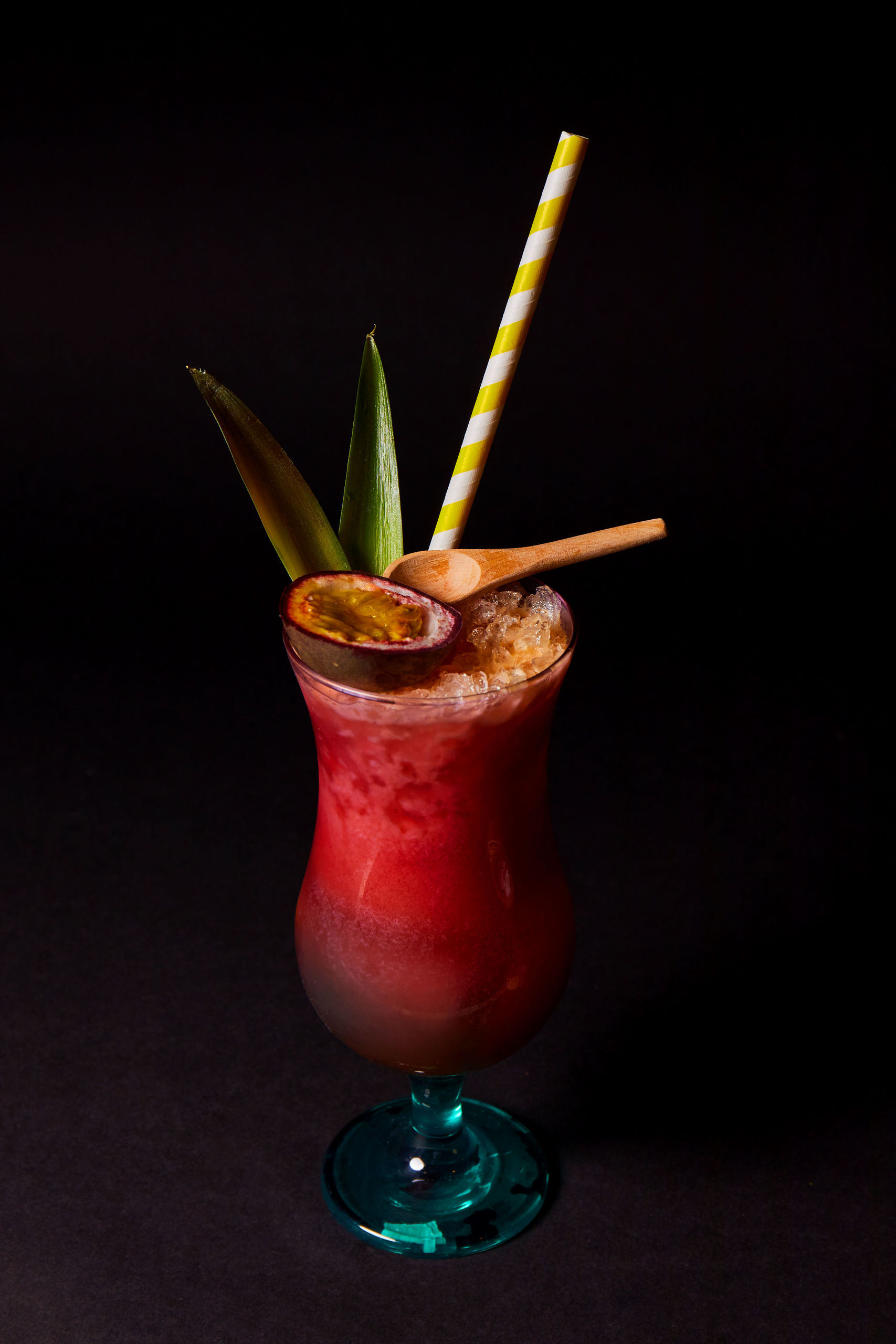 Cóctel Cartagena de Indias. Daiquiri de frutas tropicales con un mix de rones "Havana", lima, piña, tomate de árbol, ginger beer MamaQuilla y fruta de la pasión.